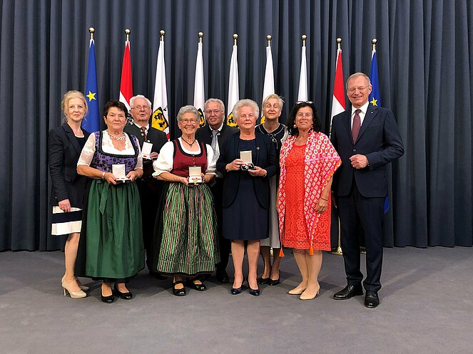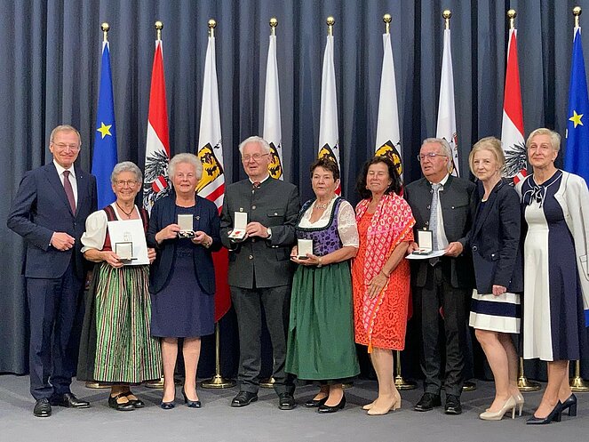 Im Beisein von PV-Landespräsidentin Birgit Gerstorfer, PV-Landessekretärin Mag.a Jutta Kepplinger und Bezirksvorsitzender Erika Diensthuber überreichte Landeshauptmann Mag.Thomas Stelzer im festlichen Rahmen des Landhauses Linz das Silberne Verdienstzeichen des Landes OÖ an Konsulentin Edeltraud Guggi und die Verdienstmedaille des Landes OÖ an Manfred Atzmüller, Josefine Gerstmayr, Rudolf Lackner und Veronika Mitterhumer. Mit diesen Ehrenzeichen wurde den Funktionär_innen für ihren langjährigen ehrenamtlichen und für die ältere Generation so wichtigen Einsatz eine besondere Wertschätzung ausgedrückt. Bei dem Festakt wurden die Ausgezeichneten auch von ihren Familien und den Bürgermeister_innen ihrer Gemeinde begleitet.