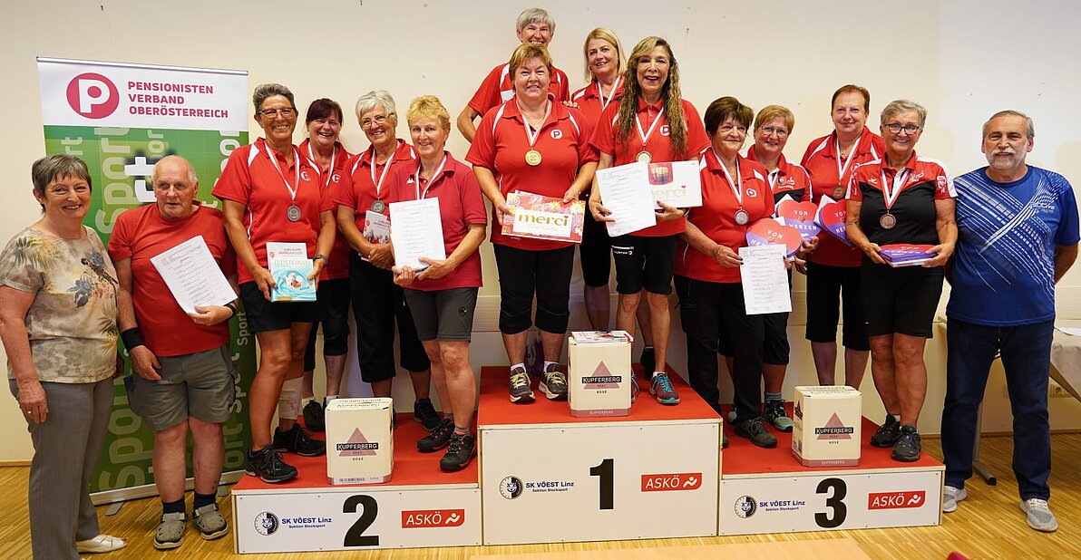 Es geht kaum besser: die Damen der OG Kirchdorf-Inzersdorf (Neuwirth Heidi, Pils Anita, Ranzenmayr Margit und Rohrauer Margarete) erkämpften sich mit einer souveränen Mannschaftsleistung bei den Asphaltstock-Landesmeisterschaften des Pensionistenverbandes OÖ, die am 24.06. in der SK-Vöest-Halle durchgeführt wurden, den Landesmeistertitel. Einen Tag später errang die Herrenmannschaft der OG Kirchdorf-Inzersdorf (Egelseder Hubert, Eile Mario, Neuwirth Werner und Weiss Wolfgang) den hervorragenden 2.Platz und somit den Vizelandesmeistertitel.