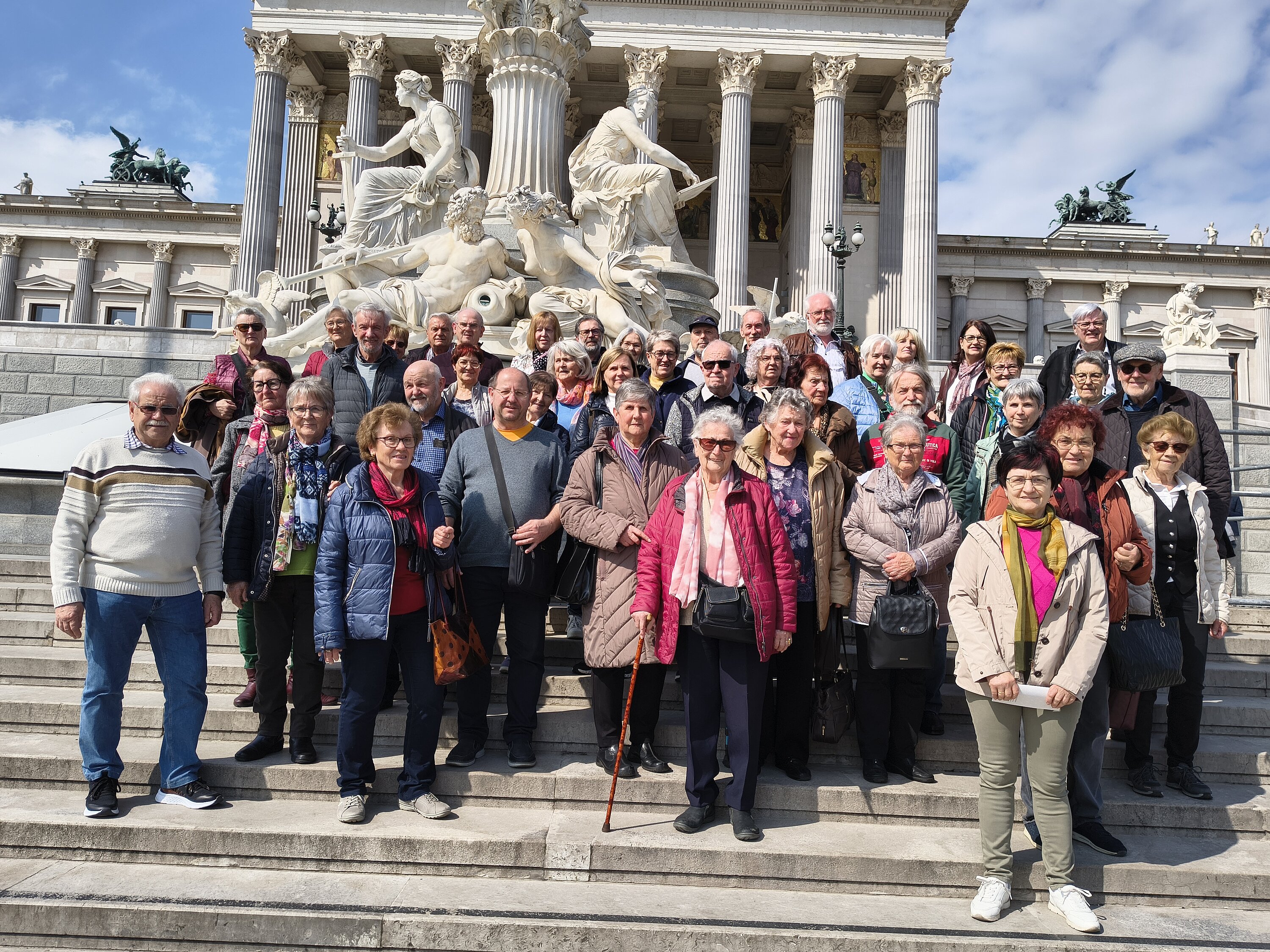Mit dem Busunternehmen Weiermair waren 44 Mitglieder unterwegs nach Wien um das neue Parlament zu besichtigen. Dieses wunderschöne Gebäude wurde beeindruckend renoviert und auf den neuesten Stand der Technik gebracht. Von der Säulenhalle, gings dann in die Sitzungsäle, der historische Sitzungssaal hat es allen angetan, aber auch die neuen Säle sind wunderschön. Im Anschluß gings zum Mittagessen zum Schnitzelwirt. Gestärkt machten wir uns auf den Weg nach Melk zum Benediktinerstift. Wir gingen durch die interessante Ausstellung, weiter in den Marmorsaal, dann auf die Terrasse mit wunderschönem Rundblick und dann noch in einige Räume der Bibliothek und zum Schluss noch in die Kirche. Nach diesen 2 tollen Führungen machten wir uns auf den Heimweg. Ein wunderschöner Ausflug ging zu Ende.