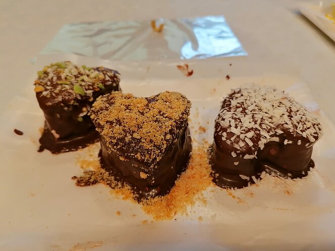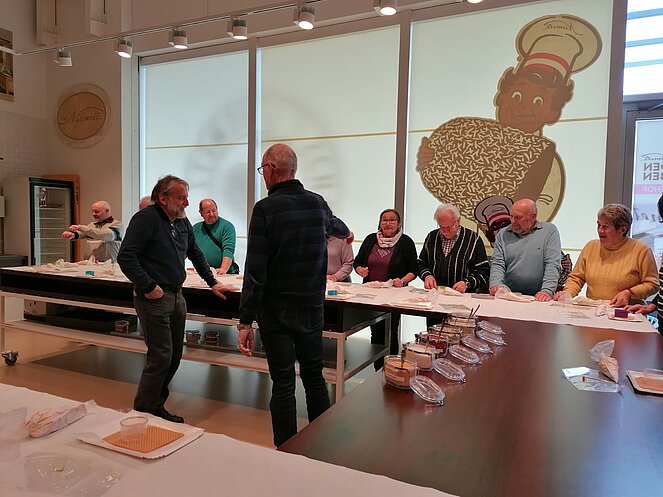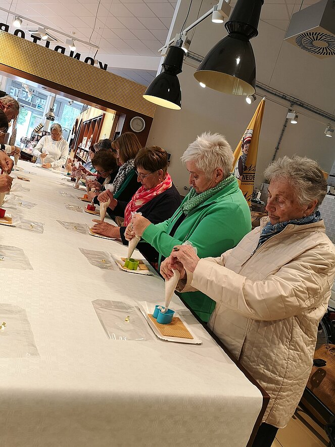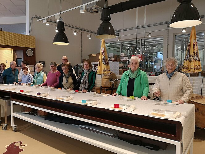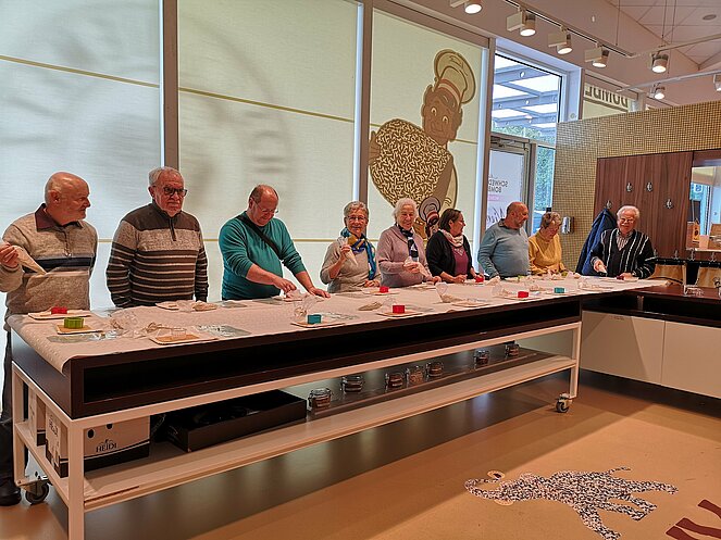 Für uns gings nun zum Workshop, nach einem kurzen Film und einigen Worten zur Firmengeschichte, stellte jeder Teilnehmer seine eigene Kreation der Schwedenbombe her, wir hatten viel Spaß dabei. Unsere Wunderwerke durften wir natürlich einpacken und mitnehmen. Dann wurde noch eingekauft und wir machten uns auf den Heimweg.