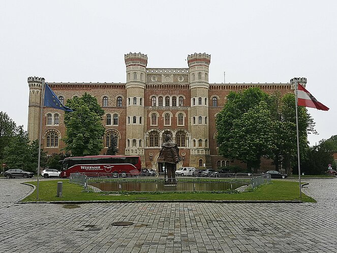 Unsere erste Station war das Heeresgeschichtliche Museum. Zwischen 1850 und 1856 wurde es aus 177 Millionen Ziegeln als Kernstück des Arsenals errichtet. Es handelt sich um ein architektonisches Meisterwerk aus 31 Backsteinbauten. Wir hatten eine sehr interessante Führung wo uns Verschiedenes näher erläutert wurde.