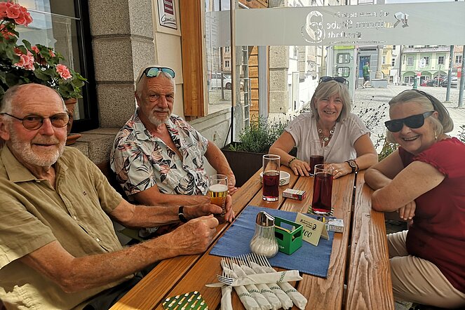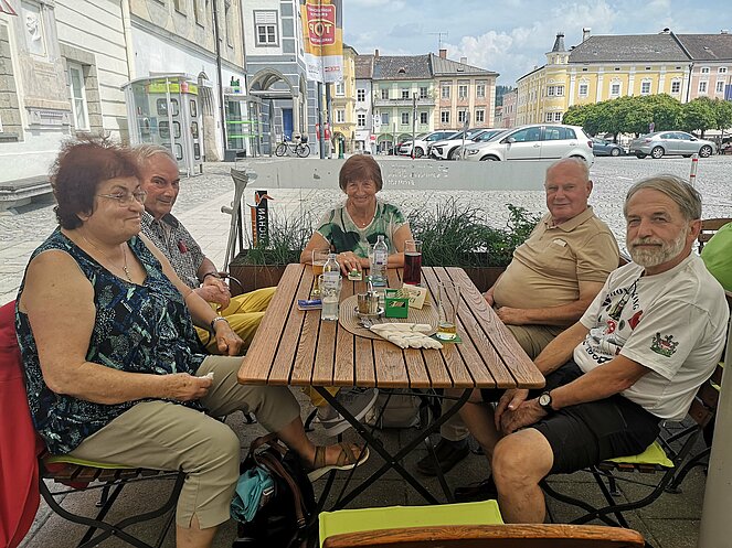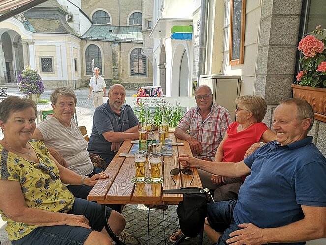 Mit einer großen Gruppe (66 an der Zahl) machten wir uns mit dem Busunternehmen Weiermair auf den Weg nach Freistadt. Aufgeteilt in 3 Gruppen hatten wir eine ausgesprochen interessante Stadtführung. Im Anschluss gings in die Ratsherrnstube zum Mittagessen. Das Lokal war gut gewählt, ein schöner Gastgarten, gemütliche Gaststube, kühle Getränke und sehr gutes Essen. Am frühen Nachmittag fuhren wir dann zum Moldaustausee nach Lipno in Tschechien. Um 15 Uhr gings mit dem Schiff „Adalbert Stifter“ auf eine 2-stündige Rundfahrt. Die Heimreise ging über Guglwald, Bad Leonfelden, Linz nach Wartberg.