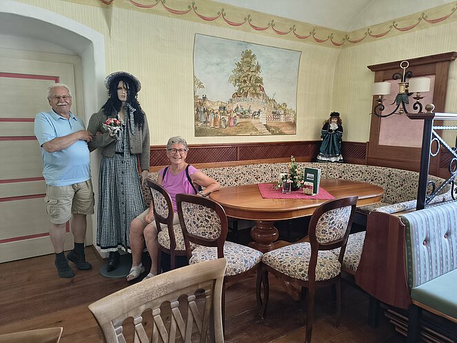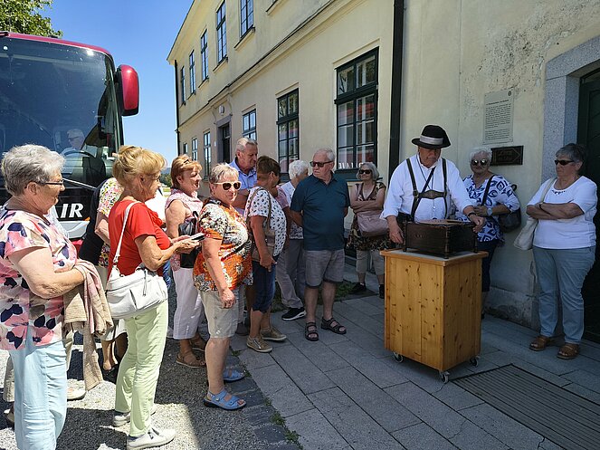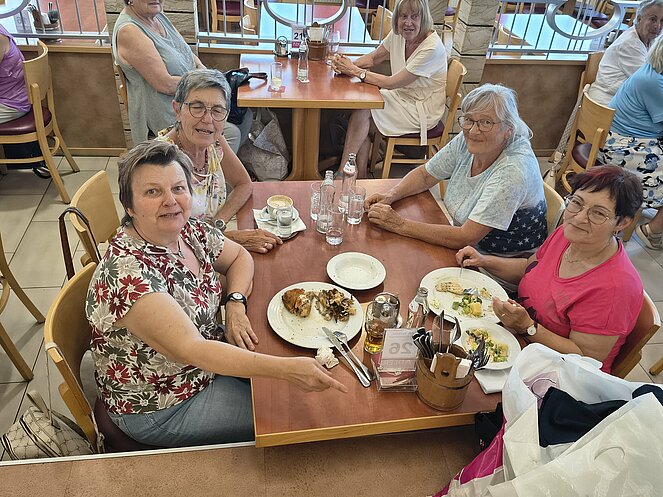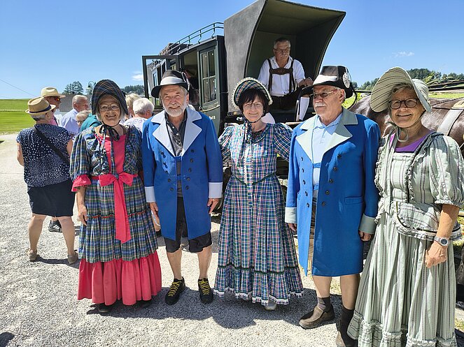 43 Mitglieder fuhren mit der Fa. Weiermair nach Ansfelden zum Modehaus Adler. Dort erwartete uns ein Frühstück und im Anschluss gab es eine Modeschau, damit wurde uns ein kleiner Einblick in das große Sortiment geboten. Viele haben dann die Gelegenheit genutzt und eingekauft. Im Restaurant von Adler haben wir dann noch zu Mittag gegessen, bevor es weiterging ins Mühlviertel zur Pferdeeisenbahn. Empfangen wurden wir vom Leierkastenspieler, alle Mitarbeiter waren in nostalgischer Kleidung, sehr eindrucksvoll. Wir erlebten auf einer kurzen Strecke mit 1 PS wie modernes Reisen vor mehr als 190 Jahren stattfand. Nach der Fahrt stärkten wir uns bei Kaffee und Mehlspeise, bevor uns bei der Museumsführung die Geschichte der Eisenbahn erläutert wurde. Auf der Heimfahrt haben wir dann noch die schöne Landschaft vom Mühlviertel und die wunderschönen Bauernhäuser in Langzwettl gesehen.
