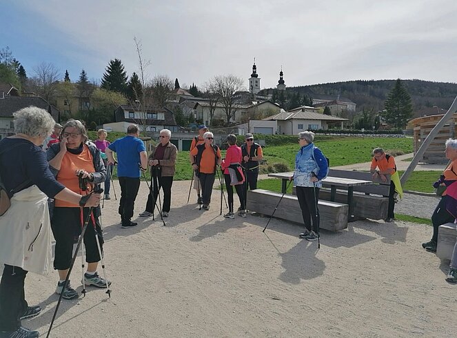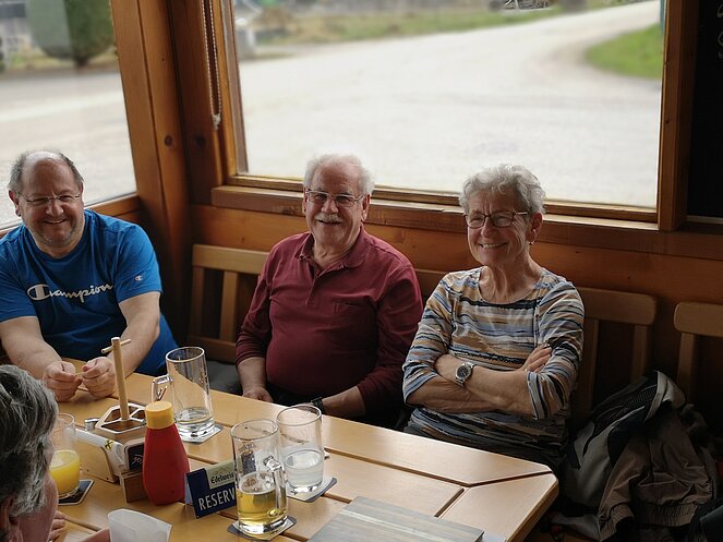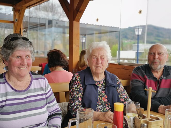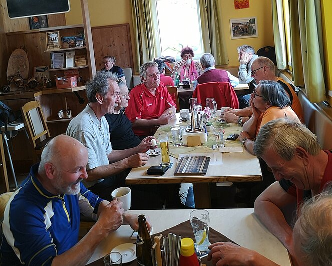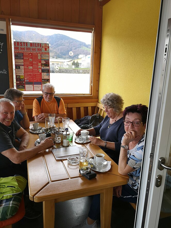 Wir überquerten die Landstraße, wanderten vorbei an der Fa. Dickbauer bis nach Inzersdorf zur Jausenzeit, da erwarteten uns weitere 8 Mitglieder unser OG (die mit dem Auto kamen) zum gemeinsamen Mittagessen.