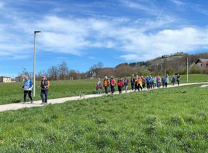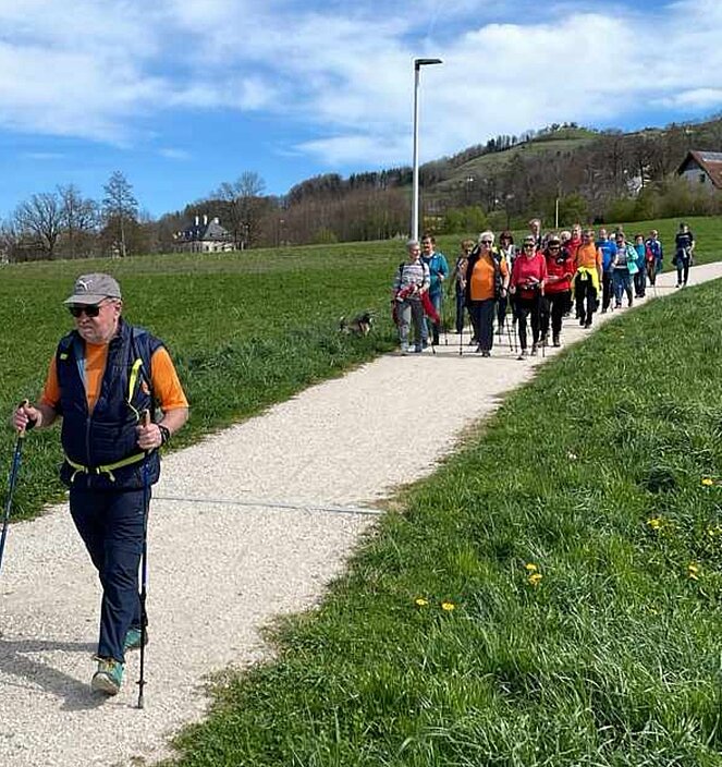 Bei herrlichem Wetter starteten 30 Wanderfreunde in Schlierbach beim Schlossteich und gingen die Grüne Achse.
