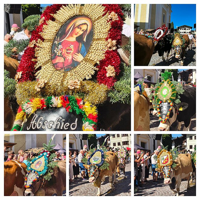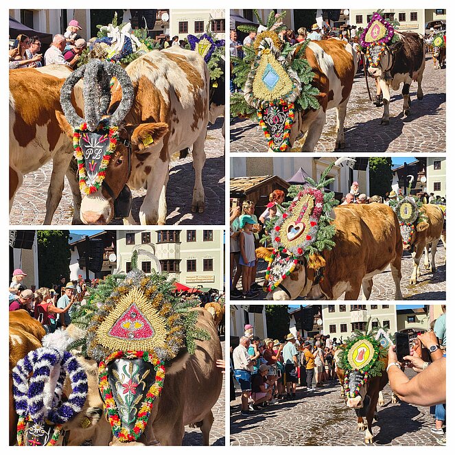 Der Höhepunkt war natürlich der Einzug der festlich geschmückten Kühe, die nach einem langen Almsommer stolz ins Tal getrieben wurden – ein echter Blickfang!