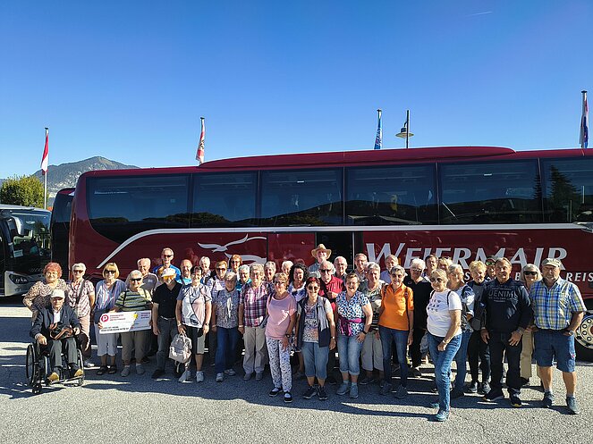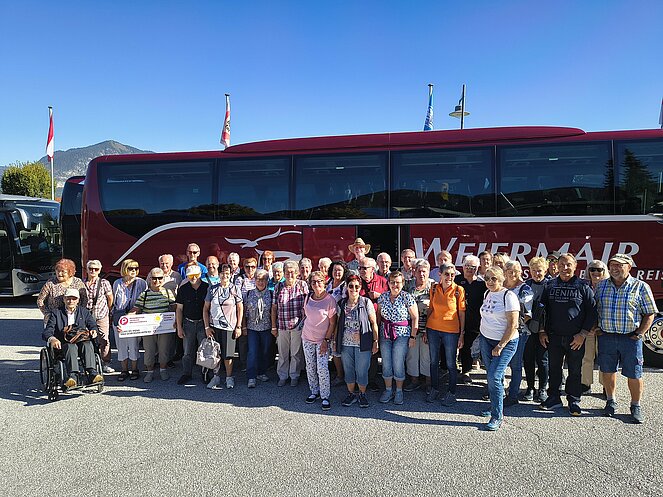 Mit 45 gut gelaunten Mitgliedern startete der Ausflug im Luxusbus der Firma Weiermair in Richtung Tirol, wo der traditionelle Almabtrieb auf dem Programm stand.