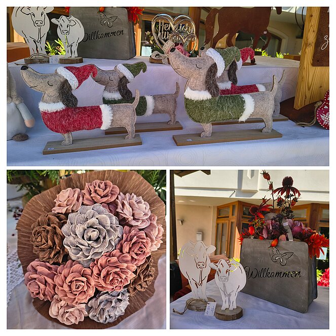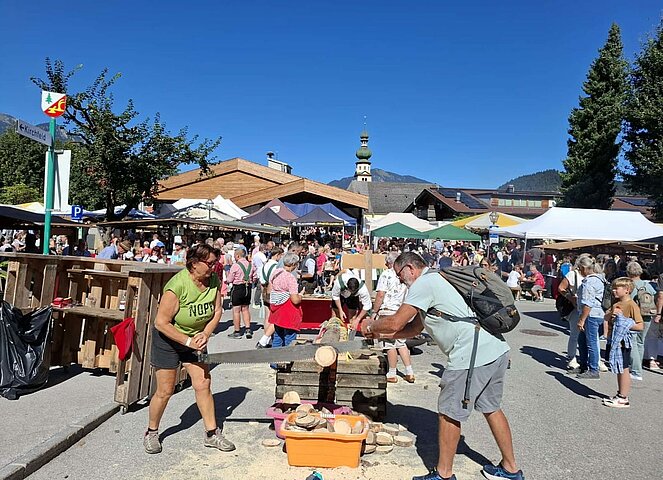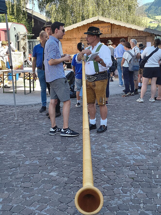 Zahlreiche Kunsthandwerksstände luden zum Staunen und Stöbern ein, die Musikkapelle sorgte für schwungvolle Klänge, und auch Alphornbläser und eine Gruppe Goaßlschnalzer mit vier Musikern beeindruckten mit ihrem Können.