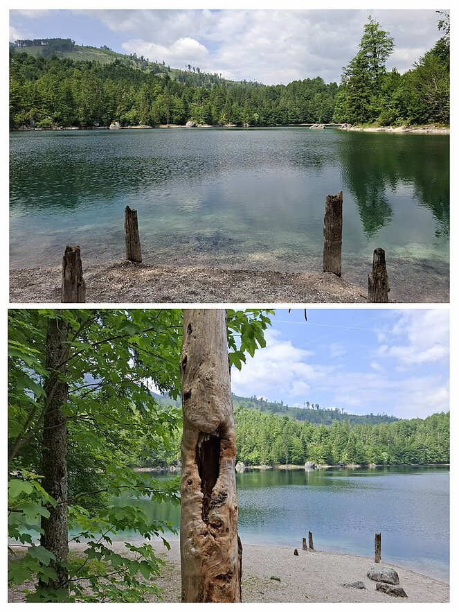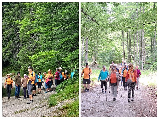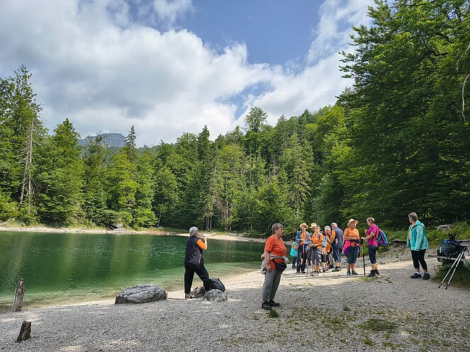Lore und Leni unsere Wanderbegleiterinnen machten sich mit 21 Mitgliedern auf zu den Oedseen. Beim Almtalerhaus haben wir geparkt und starteten unsere Wanderung. Bei herrlichem Wanderwetter machten wir beim großen Oedsee eine kleine Pause, unsere Lore verwöhnt uns, denn sie hat wie immer Süssiskeiten im Rucksack. Dann ging es weiter zum kleinen Oedsee. Das Wasser beider Seen schimmerte grün, ein wirklich schönes Fleckerl Heimat.
