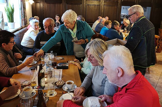 Obwohl es ziemlich windig war gingen 26 Mitglieder zu Fuß und weitere 18 Mitglieder kamen mit dem Auto zum Gasthaus. Unsere Lore hat sich riesig gefreut, dass so VIELE ihrer Einladung nachgekommen sind. Das Essen hat wie immer gut geschmeckt und die Bedienung war nett und freundlich, dafür möchten wir uns bedanken.
