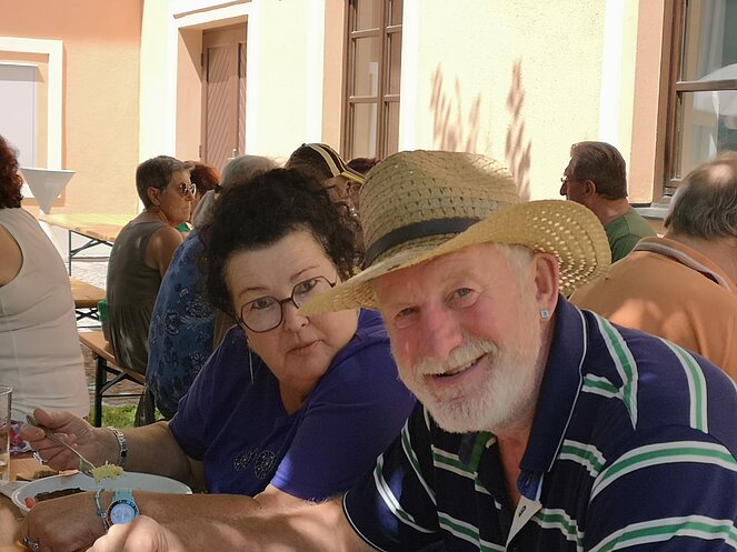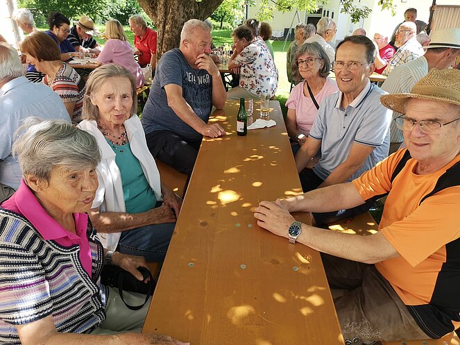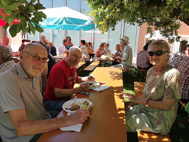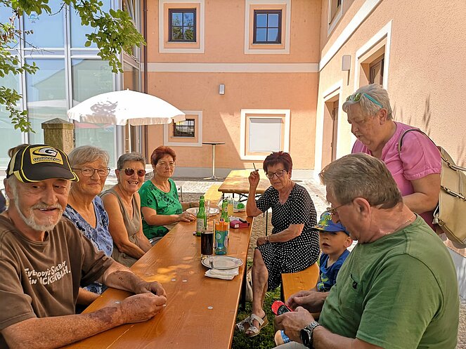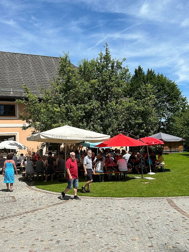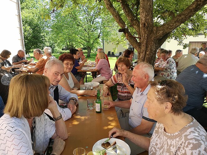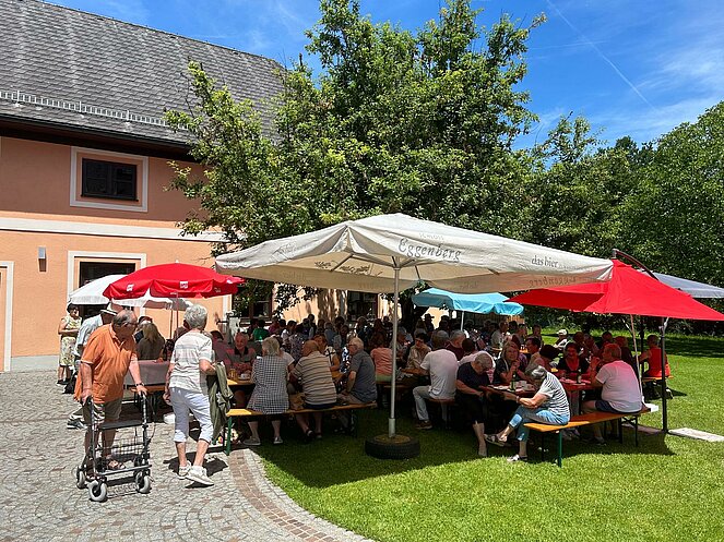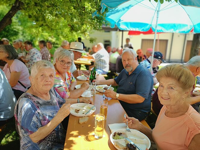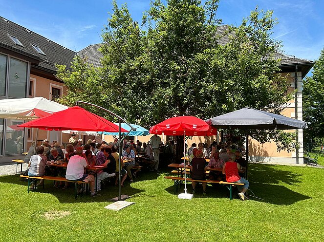 Am Vortag hat der Himmel noch geweint und am Morgen von unserem Grillfest strahlte die Sonne und wir konnten im Pfarrhofgarten sitzen.