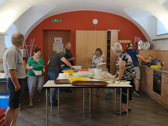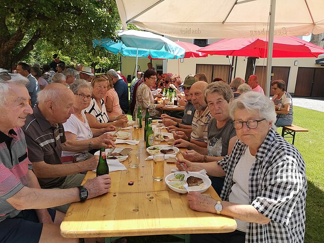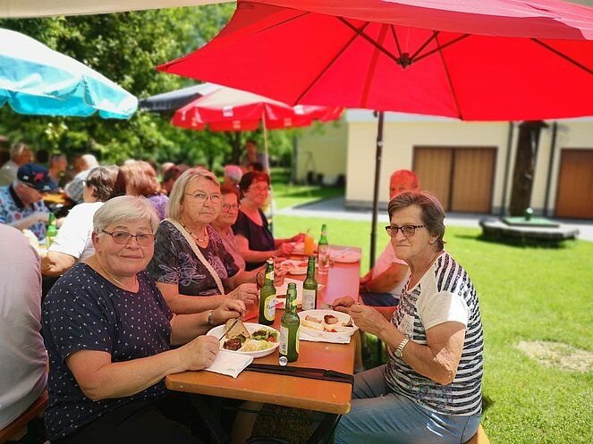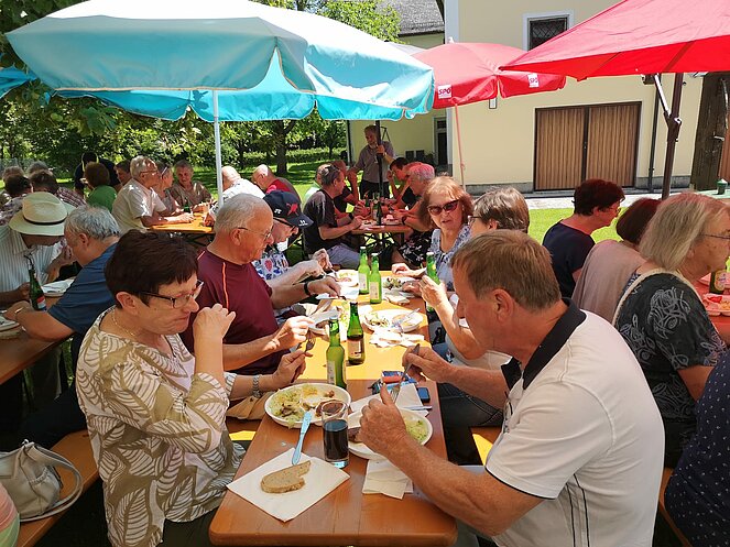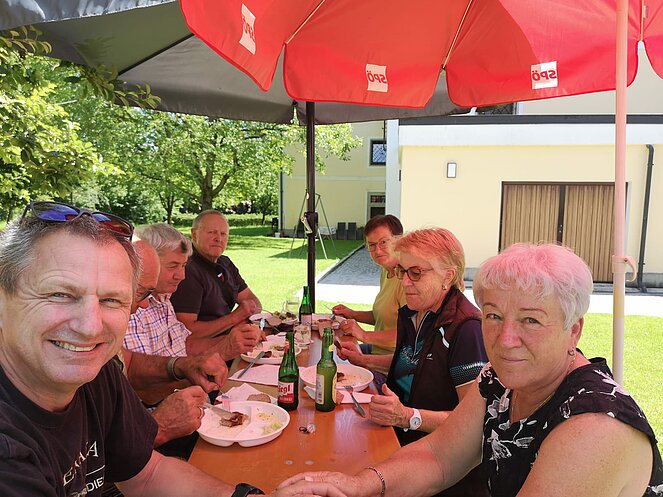 Viele Mitglieder und Freunde (110 an der Zahl) sind unserer Einladung gefolgt, was unsere Vroni und das gesamte Team ganz besonders freute. Unsere Grillmeister Alois und Armin haben wieder sehr gute Arbeit geleistet und in der Küche haben viele fleißige Hände die Salate vorbereitet. Fürs Mehlspeisenbuffet war wieder Helga und an den Kaffeemaschinen Hermi zuständig. Die Auswahl an Mehlspeisen hat wieder alles übertroffen, viele davon wurden vor Ort verspeist und jede Menge wurde nach Hause mitgenommen. Ein ganz großes Dankeschön an unsere Mitglieder, die so toll gebacken haben. Es gab viel Lob für das Gegrillte und die sehr schmackhaft zubereiteten Salate.