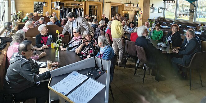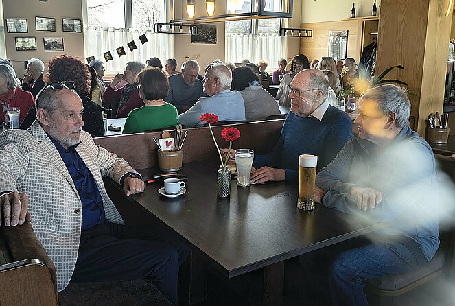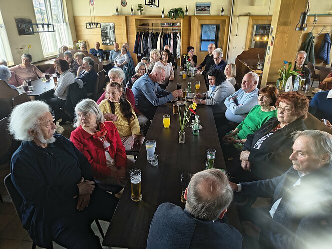 Das vergangene Jahr 2025 wurde uns durch eine liebevoll von Herrn Rudolf Huemer zusammengestellte Diashow noch einmal lebendig in Erinnerung gerufen. Vroni nutzte den feierlichen Rahmen, um sich bei allen zu bedanken, zum guten Vereinsleben ihren Beitrag leisten. Bei netten Gesprächen in gemütlicher Runde ließen wir den gelungenen Nachmittag harmonisch ausklingen.