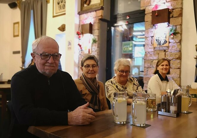 Eine kleine, schnell entschlossene Gruppe von 13 Personen fuhr mit dem Zug nach Wien zur Weihnachtsgala vom Gerberhaus in die Stadthalle. Zum Mittagessen waren wir im Stadthallenbräu (sehr freundliche Bedienung und ausgezeichnetes Essen) bevor wir zur Veranstaltung gingen.