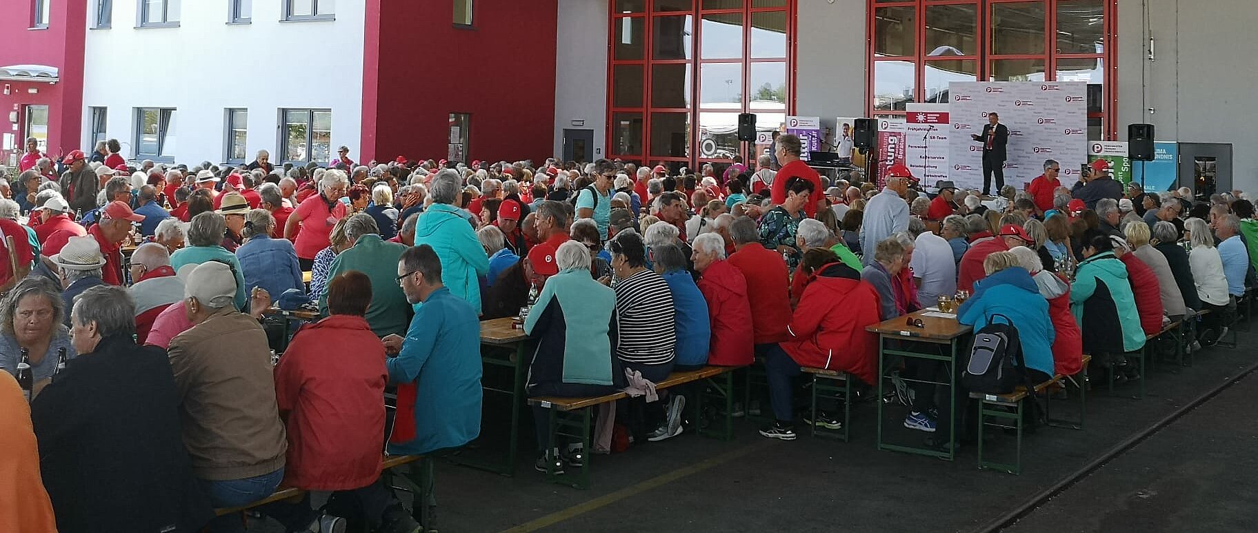 Wieder am Ausgangspunkt angekommen wurden wir hervorragend verköstigt. Ein ganz großes Lob an die Ortsgruppe Eferding-Pupping, die rund 800 OÖ-Wanderfreunde mit gutem Essen, Getränken, Kaffee und hervorragenden Mehlspeisen bewirtete.