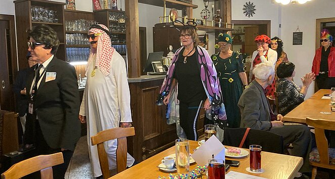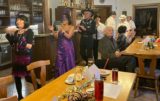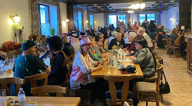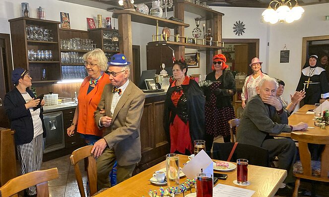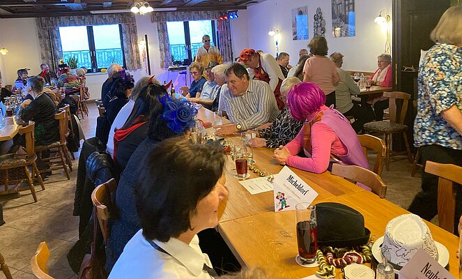 Der Startschuss fiel auf kreative Weise: Unsere Vorsitzende Vroni hieß die Gäste mit einer eigens gereimten und gesungenen Begrüßung willkommen. Zwischendurch sorgte das Gedicht aus dem Urwald vorgetragen von Marianne und schauspielerisch dargestellt von Lore für herzhaftes Lachen.