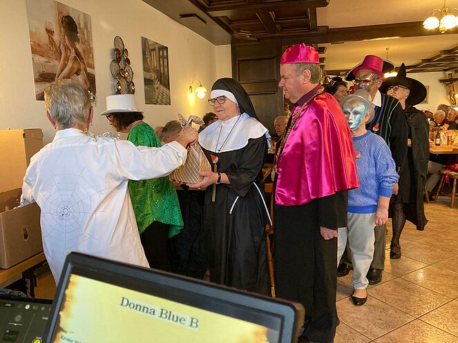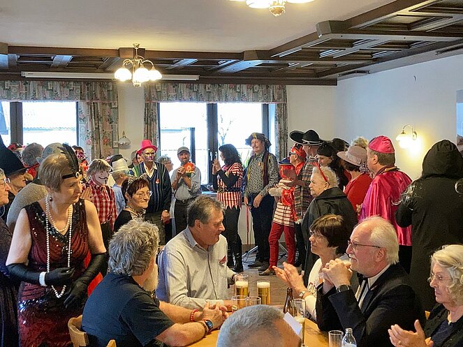 Mit dem Einzug von vielen maskierten Gäste wurde der Ball mit der Begrüßung durch unsere Vorsitzende Veronika schwungvoll eröffnet und das Tanzbein wurde eifrig geschwungen. Musikalisch hat uns Walter Kronsteiner begeistert und Marianne hat wieder Sachen zum Lachen vorgebracht. Auch dieses Jahr belohnten wir jede Maske mit einem Bschoad Binkerl.