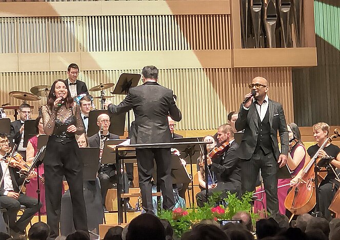 - Die Solistin Kerstin Turnheim verzauberte das Publikum mit ihrer beeindruckenden Stimme und Eric Papilaya glänzte nicht nur gesanglich, sondern führte auch mit viel Witz und Charme als Moderator durchs Programm.
