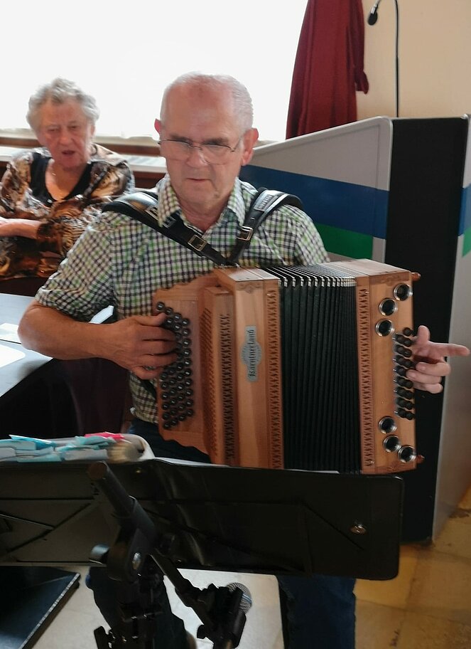 Auch heuer hat uns Marianne mit Ihren lustigen Gedichten zum Lachen gebracht und Franz Mair unterhielt uns musikalisch und spielte viele bekannte Stücke auf der Steirischen. Beim Sitzen, Trinken und Plaudern verging die Zeit wie im Flug. Eine wirklich netter Nachmittag in netter Gesellschaft.