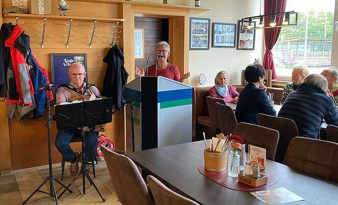 Die Anwesenden erlebten ein sehr gemütliches Beisammensein. Für die ausgezeichnete Stimmung sorgte unser Mitglied Franz, der mit seiner Steirischen die musikalische Umrahmung übernahm. Ergänzt wurde die Unterhaltung durch Marianne, die mit ihren lustigen Gschichten alle zum Lachen brachte.