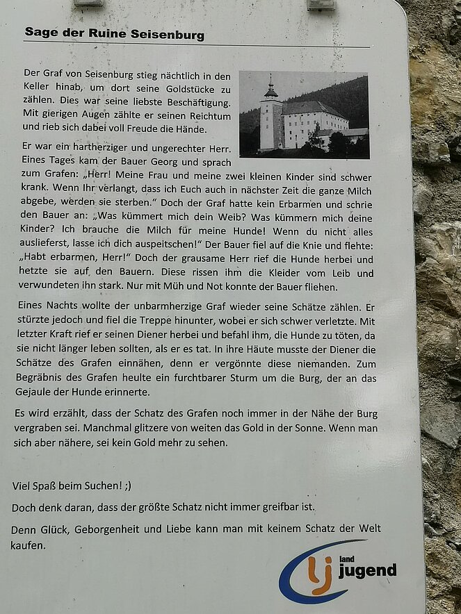 Im Mittelalter war die Seisenburg unter anderem die Bleibe eines berüchtigten Raubritters, später wurde sie zu einem prächtigen Schloss umgebaut und im 2. Weltkrieg wurde sie zur Ruine.