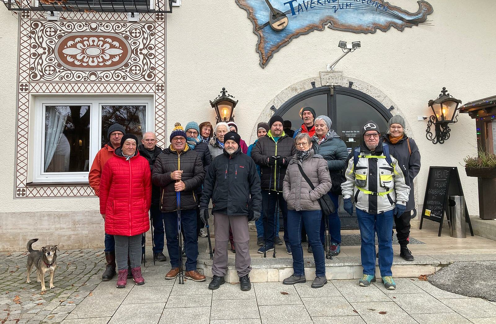 Trotz typisch grauem Dezemberwetter folgten 38 Teilnehmer der Einladung zur diesjährigen Weihnachtswanderung. Während 23 Naturfreunde die Strecke zu Fuß meisterten, traf sich die gesamte Gruppe zur gemütlichen Einkehr in der „Taverne zum Griechen“. Alle Anwesenden wurden von Hannelore mit einem kleinen Präsent überrascht.