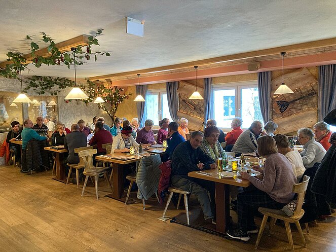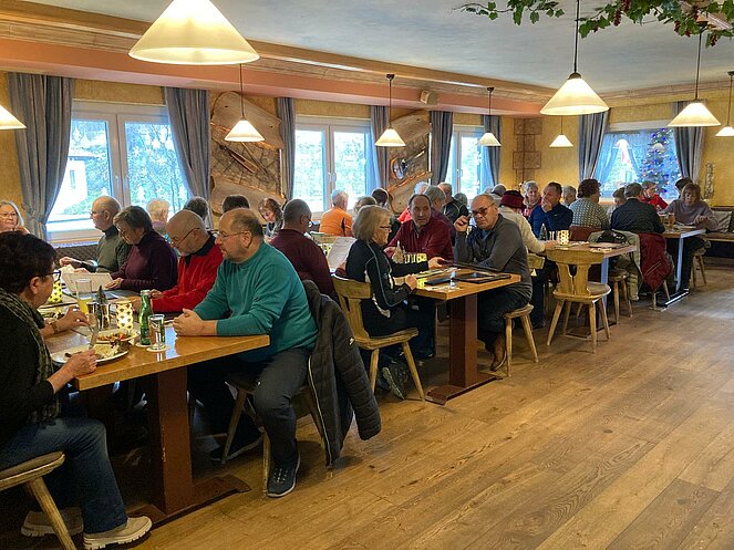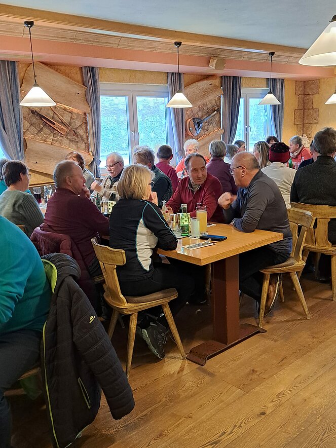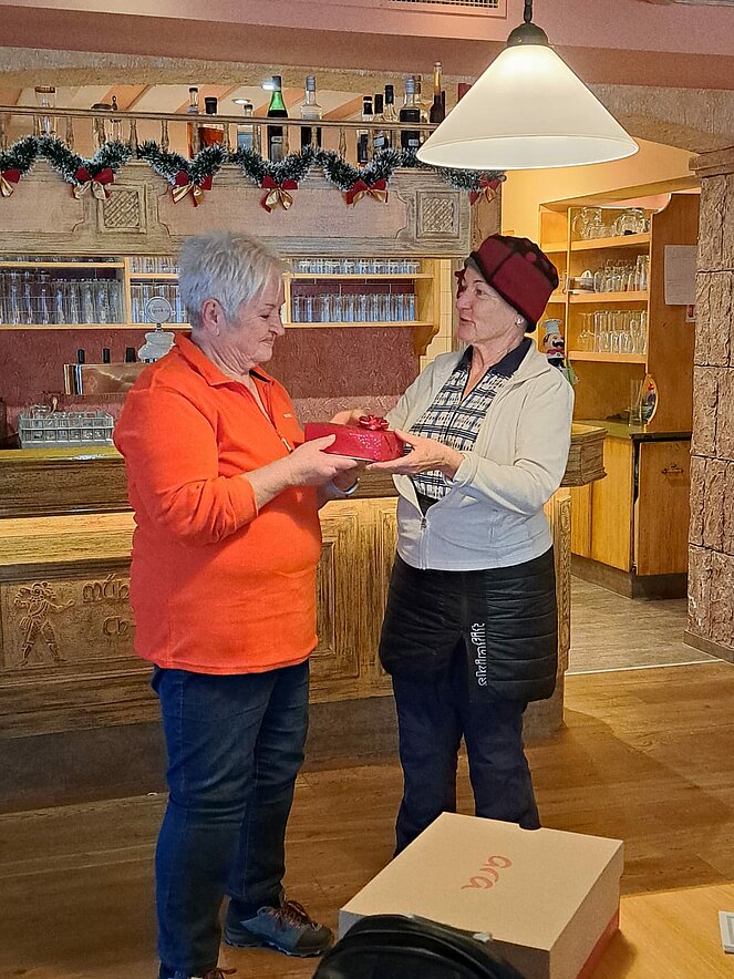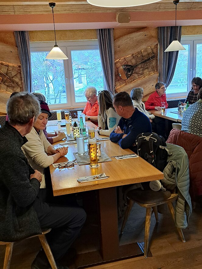 Bei gutem Essen und anregenden Gesprächen ließen wir die Wander- und Radsaison ausklingen. Ein besonderer Moment war das Dankeschön der Gruppe, das Traudi an unsere Wanderbegleiterin Hannelore überreichte. Da unser Fahrradguide Armin krankheitsbedingt fehlte, wurde er kurzerhand mit seinem Geschenk zu Hause besucht.
