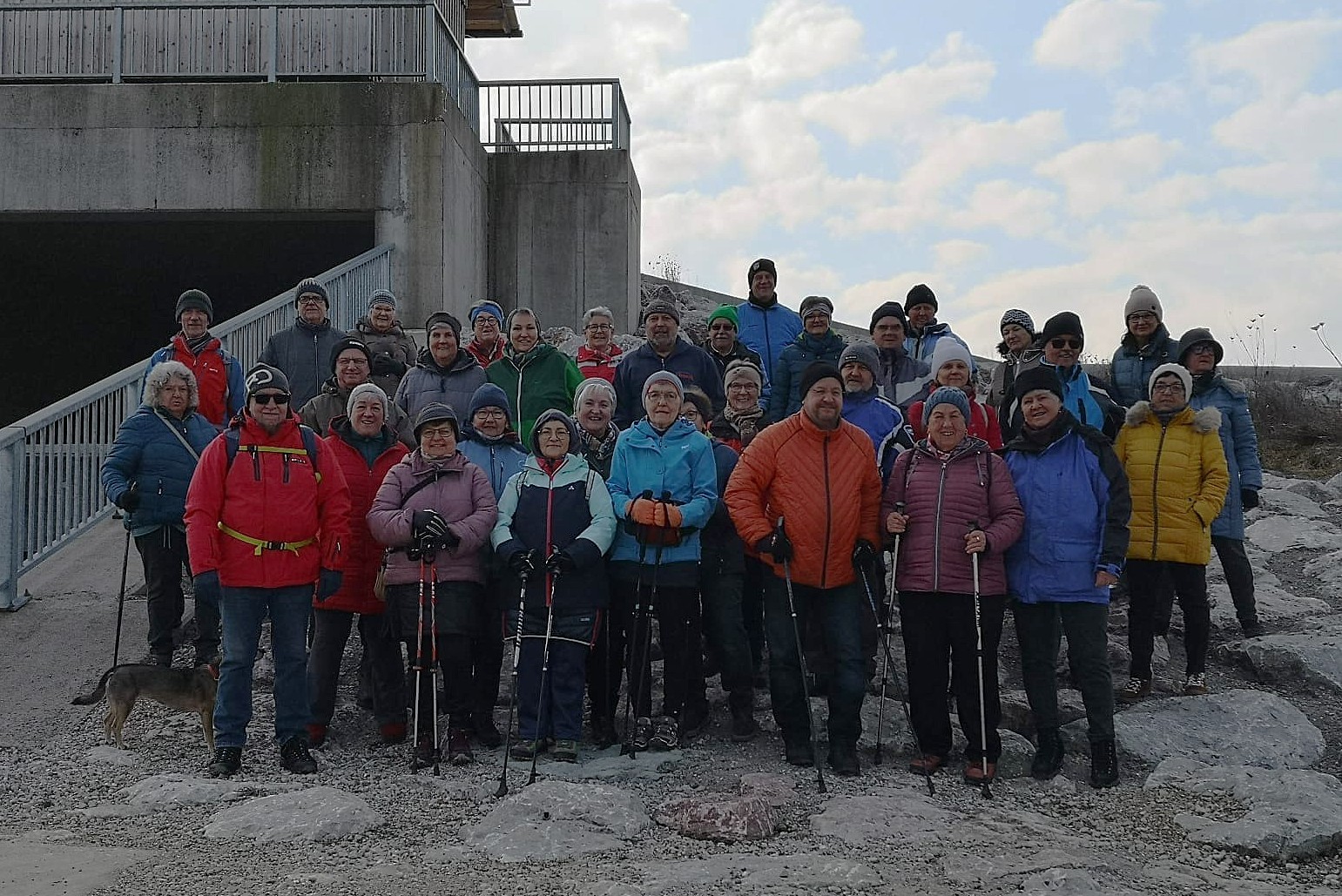 Eine wirklich große Gruppe –35 an der Zahl- wanderbegeisterte Mitglieder trafen sich am Pendlerparkplatz und gingen die Krems hinauf zum Rückhaltebecken. Jetzt gab es eine kleine Stärkung bevor wir oben die Staumauer entlang gingen. Zurück nach Wartberg wanderten wir neben der Bahn. Nach 2 ½ Stunden und 8,02 KM in den Beinen ging’s zum Mittagessen ins Restaurant Plaschlhof und immer wieder schön, dass 7 weitere Mitglieder ins Gasthaus kamen.