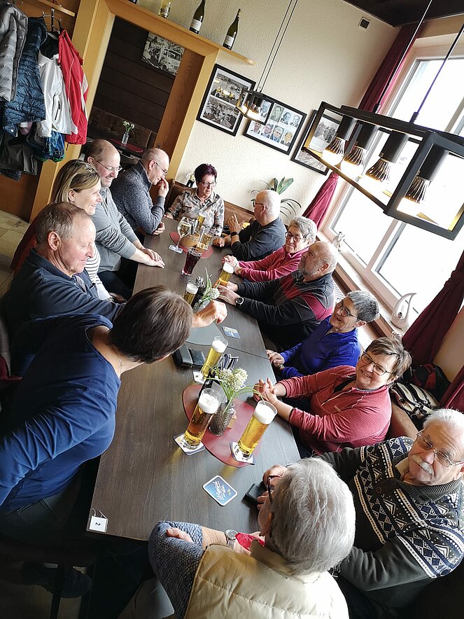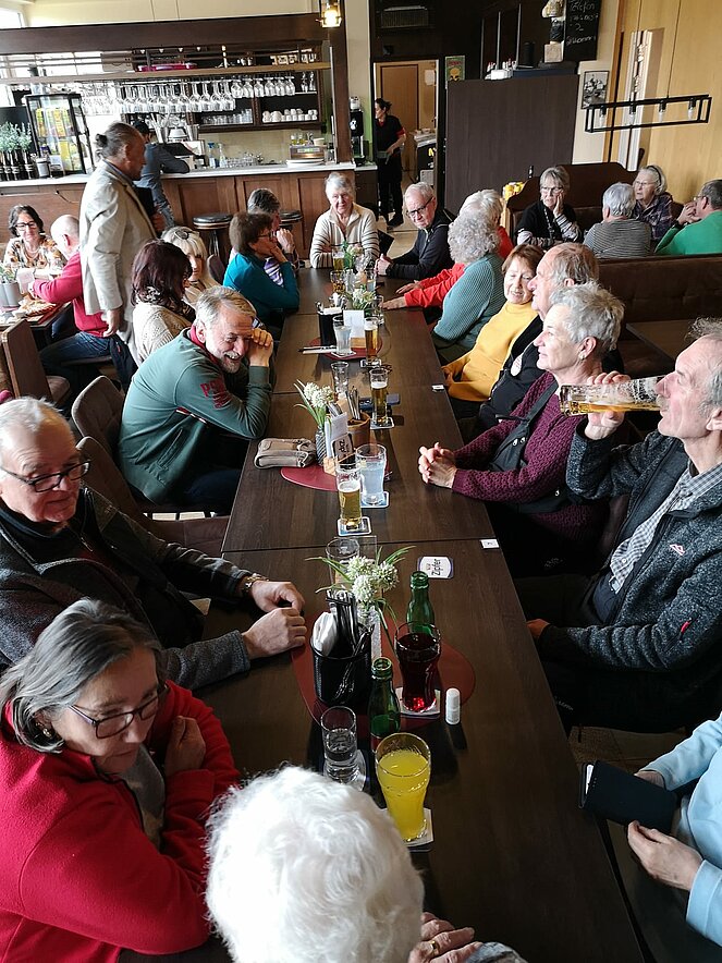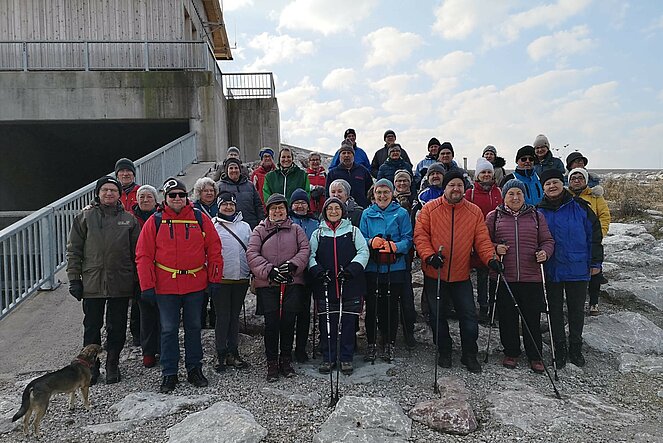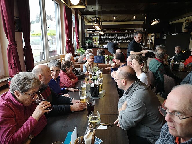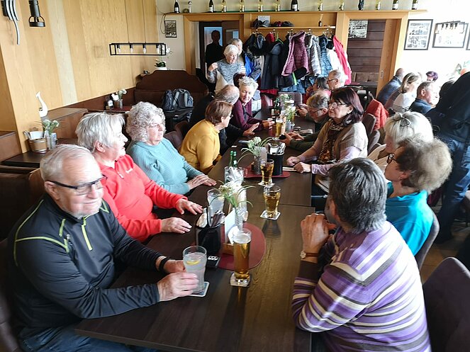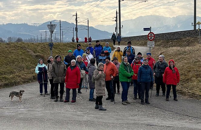 Eine wirklich große Gruppe –35 an der Zahl- wanderbegeisterte Mitglieder trafen sich am Pendlerparkplatz und gingen die Krems hinauf zum Rückhaltebecken. Jetzt gab es eine kleine Stärkung bevor wir oben die Staumauer entlang gingen. Zurück nach Wartberg wanderten wir neben der Bahn. Nach 2 ½ Stunden und 8,02 KM in den Beinen ging’s zum Mittagessen ins Restaurant Plaschlhof und immer wieder schön, dass 7 weitere Mitglieder ins Gasthaus kamen.