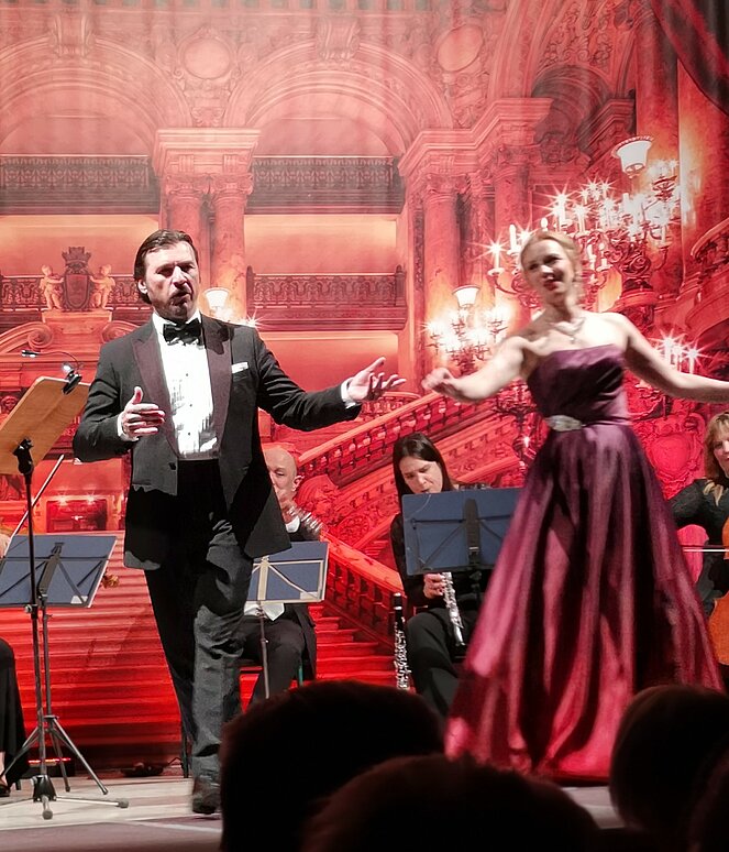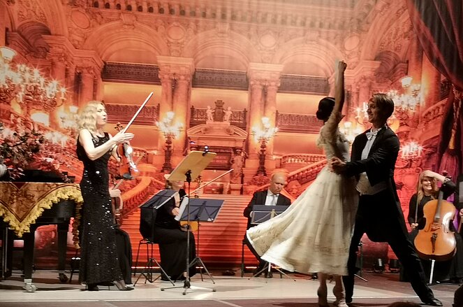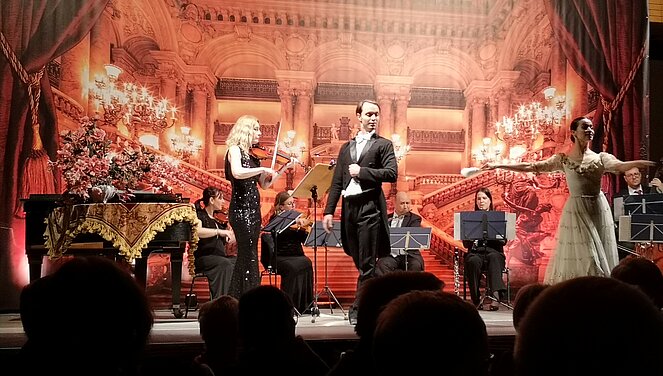 Das Kammerorchester Interkunst Wien, mit internationalen Solisten, Gasttänzern des Nationaltheaters Athen, spielte die schönsten Wiener Melodien und Walzer.