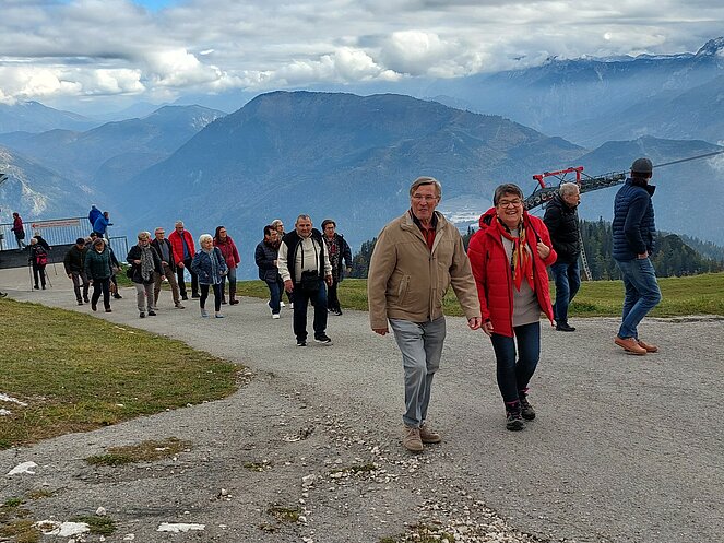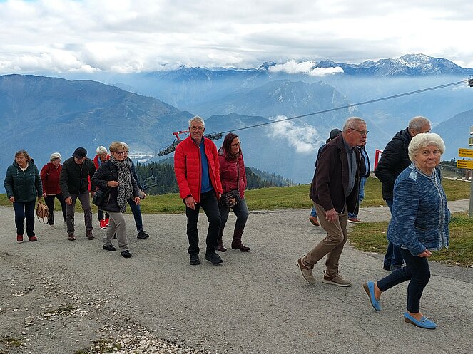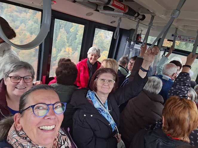 Anschließend setzten wir unsere Fahrt fort, um zur Feuerkogl Bergbahn zu gelangen. Unsere Gruppe mit fast 80 Personen fuhr in drei Gondeln auf den Berg. Während der Auffahrt wechselten sich Sonnenstrahlen und Nebel immer wieder ab, sodass wir zwischendurch eine wunderschöne Fernsicht genießen konnten.