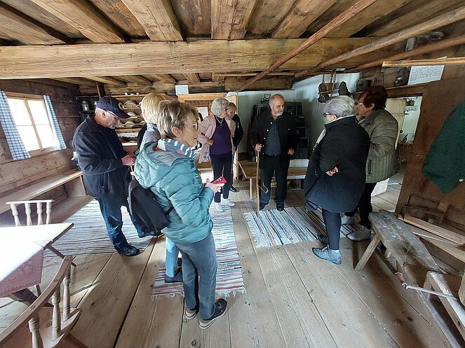 Unsere Reise führte uns zunächst vorbei am malerischen Traunsee und Hallstätter See. Besonders eindrucksvoll war auch die herbstliche Färbung des Laubwaldes entlang der Straße. Das erste Ziel des Tages war das Freilichtmuseum „Das Gosauer Heimat Haus“. Dieses kleine, bereits über 420 Jahre alte Museum bot uns faszinierende Einblicke in das bäuerliche Kulturerbe des Gosautales. Zugleich ist es Teil der renommierten UNESCO-Welterberegion Hallstatt-Dachstein-Salzkammergut.