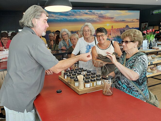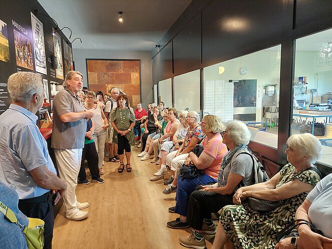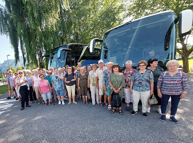 Mit zwei Bussen starteten wir unseren Ausflug Richtung Bad Goisern. Schon auf der Autobahn konnten wir den „Wächter des Salzkammergutes“, den mächtigen Traunstein, erblicken und allen war klar - für unseren heutigen Ausflug kann es kein besseres Wetter geben. Entlang des glitzernden Traunsees erreichten wir in Bad Goisern die Senferei Annamax. Vor mehr als 13 Jahren hat der Besitzer Rainer Baumgartner seine Leidenschaft für den Senf entdeckt. Bei seinem Vortrag zur Entstehung des Senfes, seinem hohen Qualitätsanspruch sowie den vielen Informationen zur Verarbeitung konnte man die Begeisterung und Erfahrung erkennen. Anschließend durften wir verschiedene Senfsorten verkosten und es wurde natürlich fleißig eingekauft.