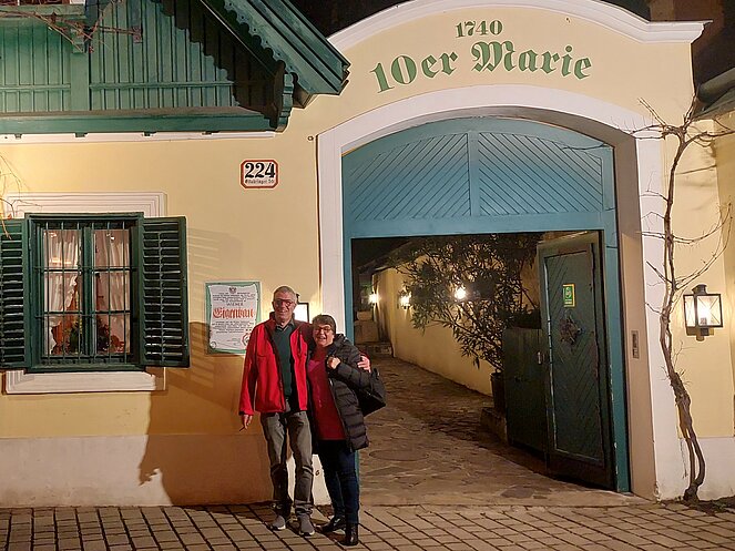 Nach dieser einzigartigen Vorstellung fuhren wir zum ältesten Heurigen von Wien zur "10er Marie". Das unter Denkmalschutz stehende Haus von 1740 ist seit dem Jahr 1993 im Besitz der Familie Fuhrgassl-Huber. Bei einem Heurigenbuffet mit ausgezeichnetem Wein und Traubensaft haben wir diesen wunderschönen Tag ausklingen lassen.
