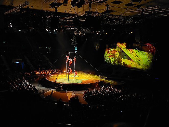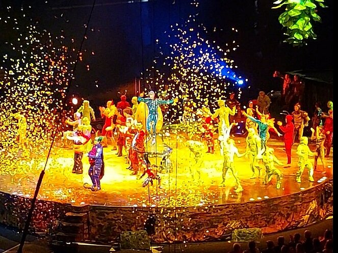 Nach einer kleinen Pause trafen wir pünktlich zur Mittagsvorstellung des Cirque du Soleil in der Wiener Stadthalle ein. Bei der neuen Show "Ovo" sorgten über 50 Akrobaten in Insektenkostümen von Beginn an für Spannung und Begeisterung. Käfer, Glühwürmchen, eine Raupe, die sich am Trapez in einen Schmetterling verwandelte, dazu Musik, eine beindruckende Kulisse und immer wieder staunten wir über diese artistische Perfektion. Ein besonderer Höhepunkt waren sicher die trampolinspringenden Heuschrecken.