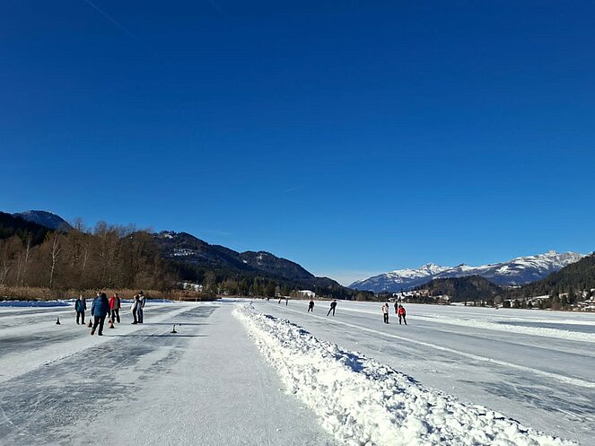 Am Vormittag des dritten Tages zog es uns ein letztes Mal zum Weißensee. Unter einem strahlend blauen Himmel und bei angenehmen Plusgraden verabschiedeten wir uns auf der Eisbahn von dieser traumhaften Landschaft.