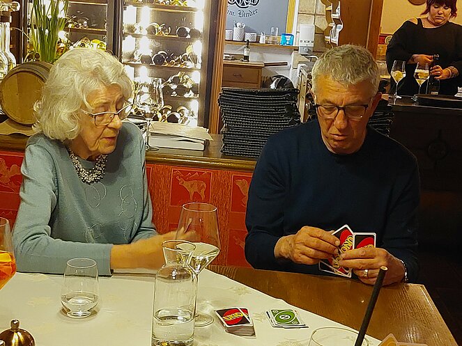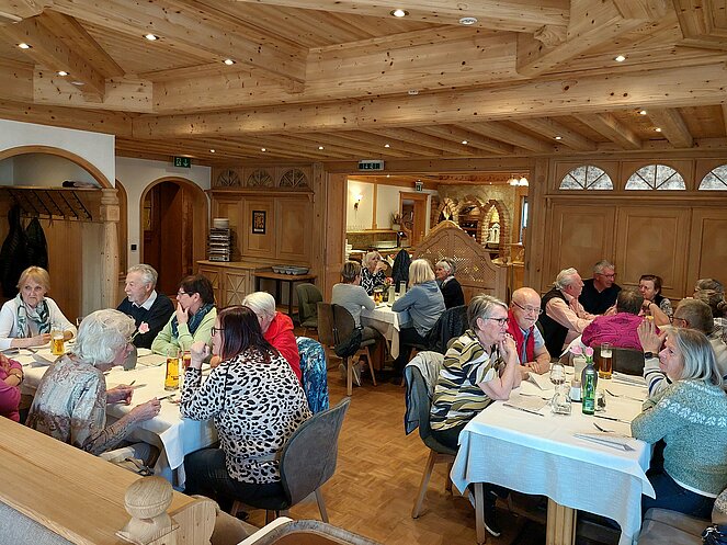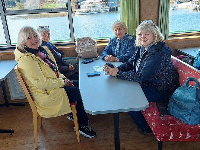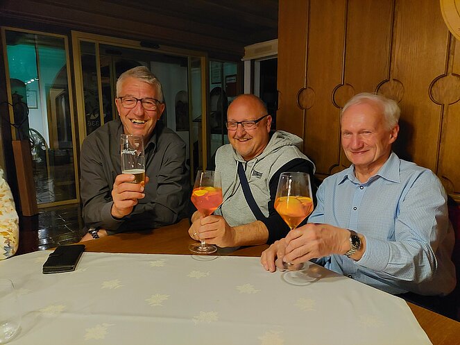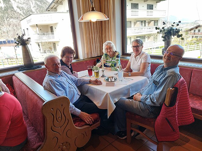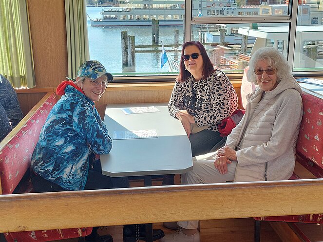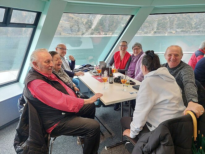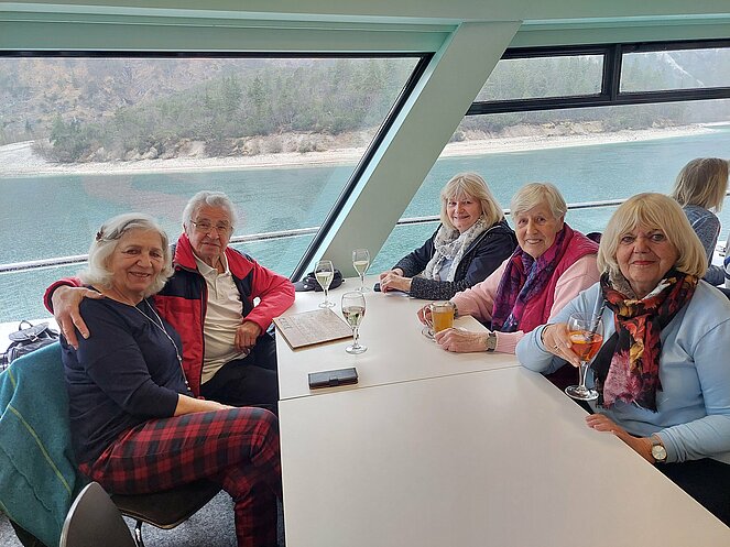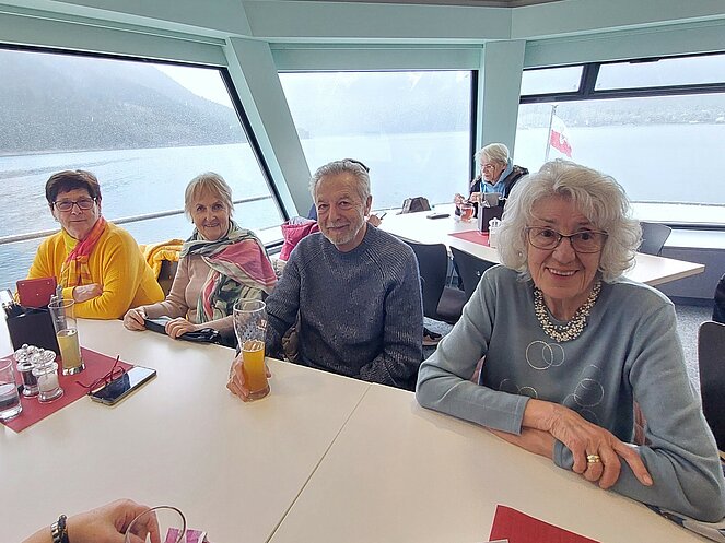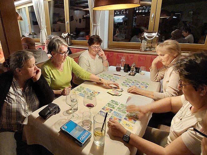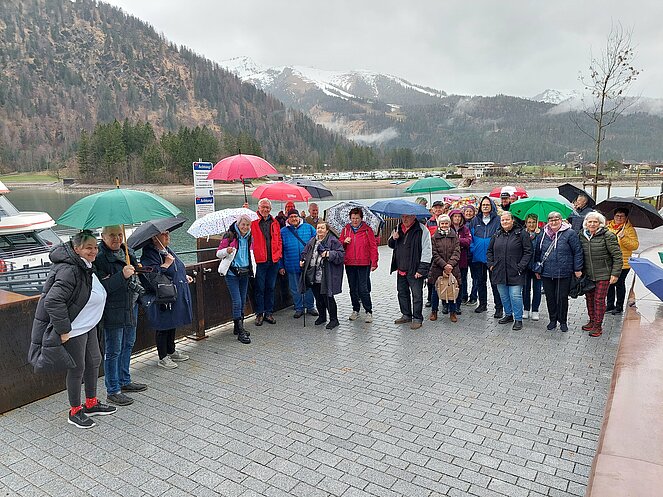 Die Wettervorschau für den nächsten Tag zeigte den ganzen Tag Regen - aber nicht mit uns. Beim Ausstieg bei der Schiffsanlegestelle Scholastika am Achensee war vom Regen kaum etwas zu bemerken und wir konnten alle noch einen kleinen Spaziergang machen, bevor das Schiff Richtung Pertisau ablegte. Bei unserer Schiffsfahrt konnten wir die verschiedenen Stimmungen im Tal oder über dem See beobachten, Regen und Sonnenschein wechselten sich ab. In Pertisau wartete schon unser Bus und brachte uns zum Restaurant Bergkristall nach Eben. Während dem Essen schüttete es teilweise in Strömen, aber kaum traten wir ins Freie verzogen sich die Regenwolken und wir konnten noch den tollen Ausblick auf den Achensee und das Karvendel genießen. Weiter ging es Richtung Rattenberg - bei einer Führung in der Glasbläserei Kisslinger erfuhren wir Details über die verschiedenen Techniken und konnten auf 3 Stockwerken die Glaskunstwerke besichtigen. Nach einem Spaziergang in der kleinsten Stadt von Österreich ging es wieder zurück in unser Hotel. Nach dem Abendessen teilten wir uns in zwei Gruppen - die Kegler und die Spieler, wobei die Spieler die Mehrzahl bildeten und neben Skyjo, Triominos auch UNO bis Mitternacht gespielt wurde.