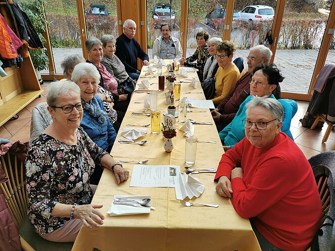 Im Anschluss ging es weiter zum Wildessen im Gasthof Silbermair in St. Konrad. Währenddessen kämpfte sich die Sonne durch den dichten Nebel und sorgte für eine wunderbare Stimmung. Viele nutzten die Gelegenheit nach dem Essen für einen Spaziergang im Sonnenschein – ein perfekter Abschluss eines gelungenen Tages.