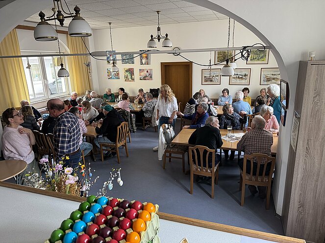 Das Ostereierpecken in der Tagesheimstätte hat schon seit vielen Jahren Tradition in der Ortsgruppe. Es ist immer ein lustiger Nachmittag, bei dem eher die Freude am Spiel als der Wettkampf im Vordergrund steht. Trotzdem gibt es natürlich auch heuer eine Siegerin, die mit dem Hauptpreis - einer selbst-gebackenen Torte unserer Kassierin Andrea Dollhopf - viel Freude hatte.