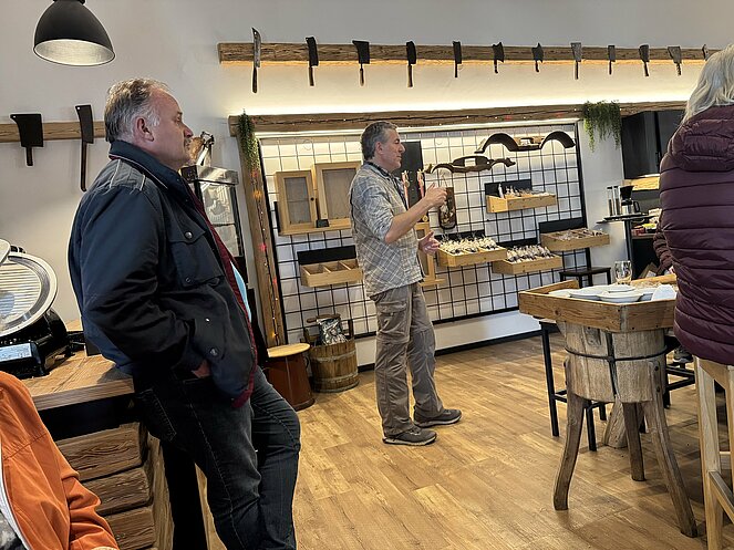 Den Abschluss bildete der Besuch der Salamitrocknerei Saller in Katsdorf. Neben interessanten Einblicken in die Herstellung gab es auch einen reichhaltigen Verkostungsteller. Die Möglichkeit zum Einkauf wurde von vielen gerne genutzt, sodass so mancher mit regionalen Spezialitäten im Gepäck die Heimreise antrat.