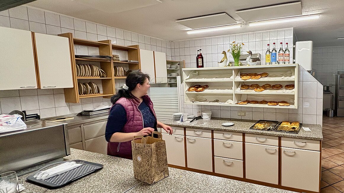 Draußen hing noch der Nebel über den Feldern, die Luft war mit rund 14 Grad recht frisch, und so entschieden wir uns für den windgeschützten Zubau, wo wir es uns an vier Tischen verteilt bequem machten. Der Duft von Most und Bratl lag in der Luft, und schon bald füllte sich der Raum mit fröhlichem Stimmengewirr.