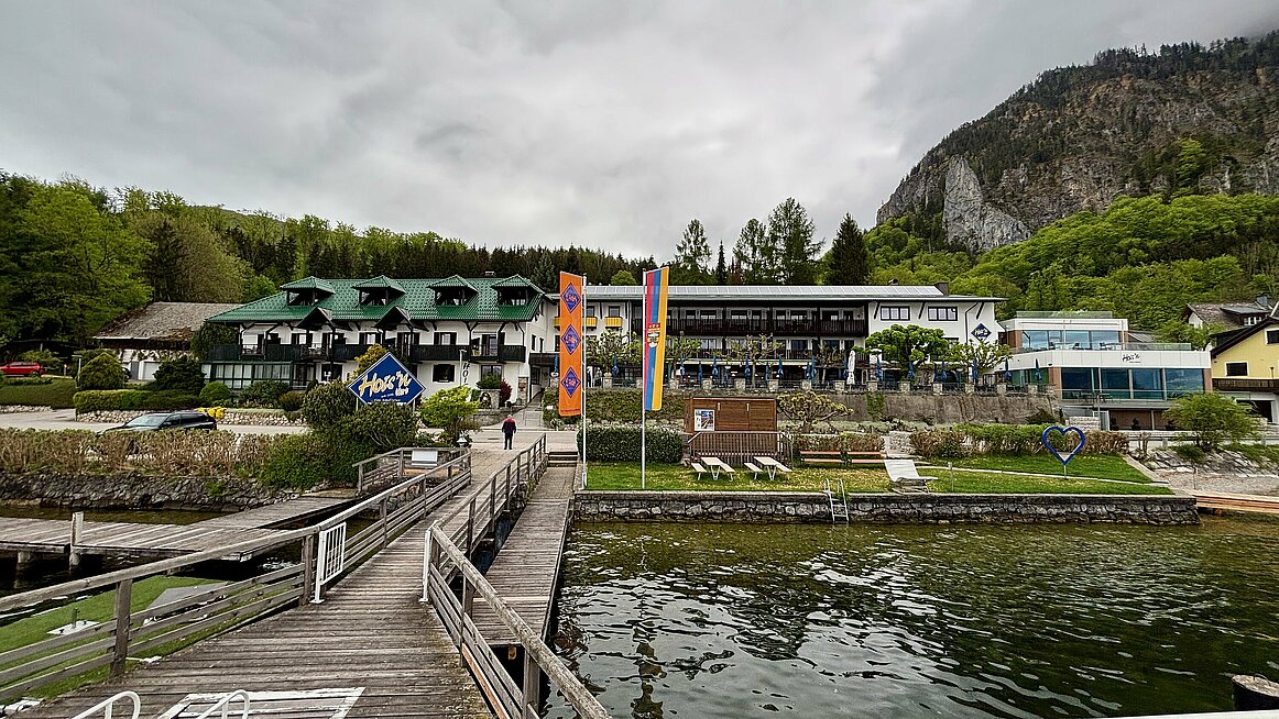 Um 13:45 brachte uns die Seilbahn wieder ins Tal. Leider hatten wir bis zur Abfahrt unseres Schiffes noch etwas Zeit – aber Zeit zum Ratschen ist bei uns ja nie ein Problem. Um ca. 14:30 kam dann die MS Traunstein angedampft.