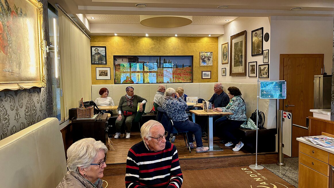 Ein Tagesausflug ohne Kaffee? Undenkbar! Leider war das berühmte Café Baumgartner geschlossen, also landeten wir im Café Kandur. Der Besitzer hatte sichtbar Stress – und ja, vielleicht hat er mal das Lächeln verlegt – aber wir blieben gelassen. Schließlich gab’s Kuchen, Kaffee und auch ein Lächeln (wenn auch verspätet).