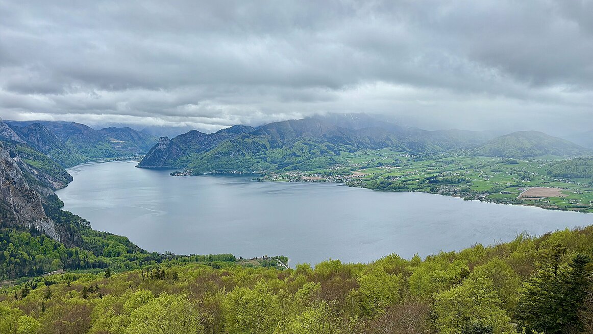 In Gmunden angekommen, ging’s bequem mit der modernen Grünbergseilbahn auf 984 Meter Seehöhe. Der Ausblick war dabei genauso spektakulär wie die frische Bergluft – ideal, um die Lungen nach dem Winter durchzupusten.