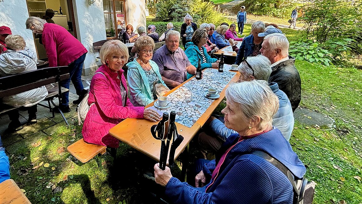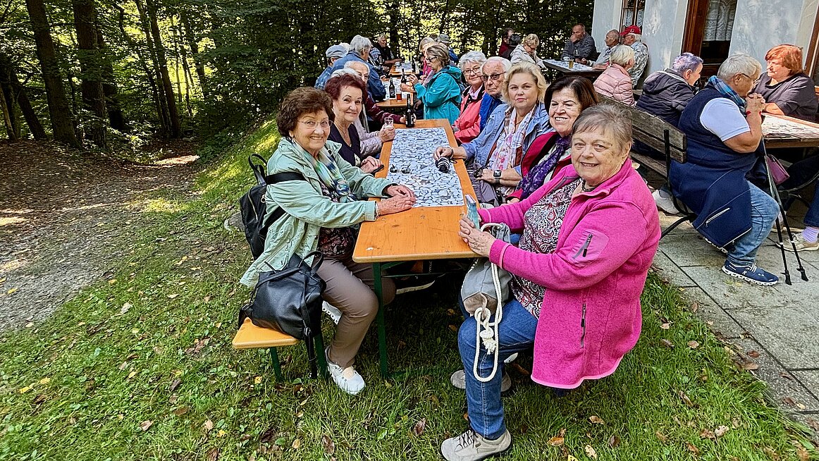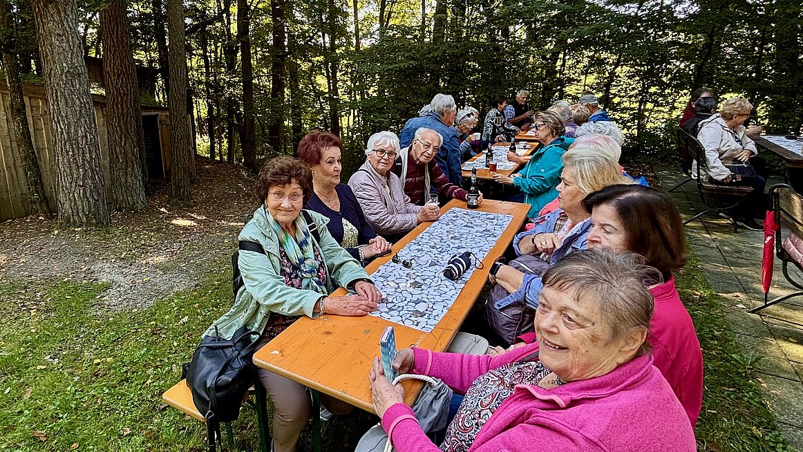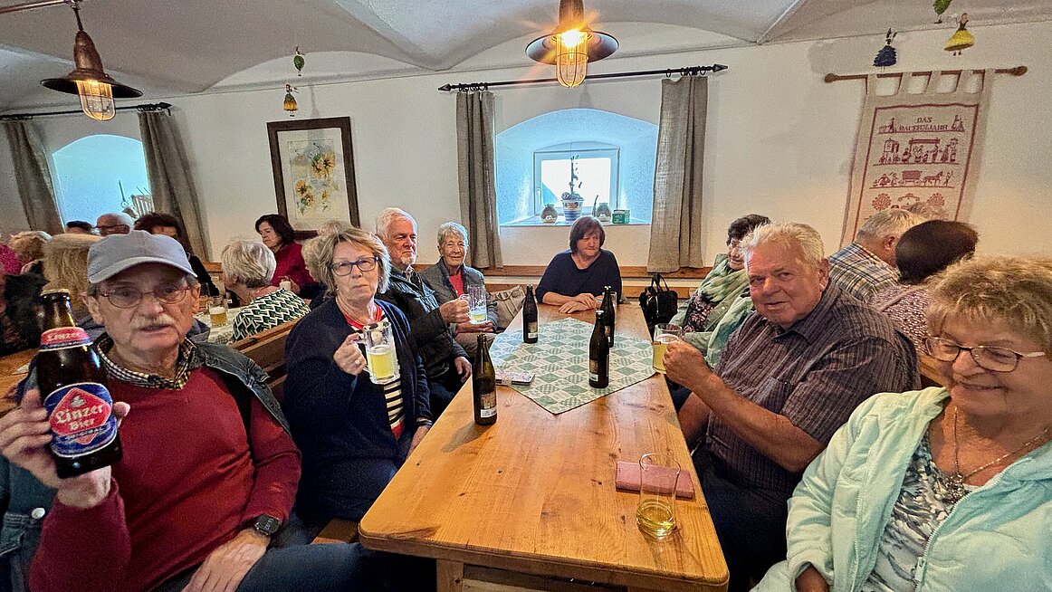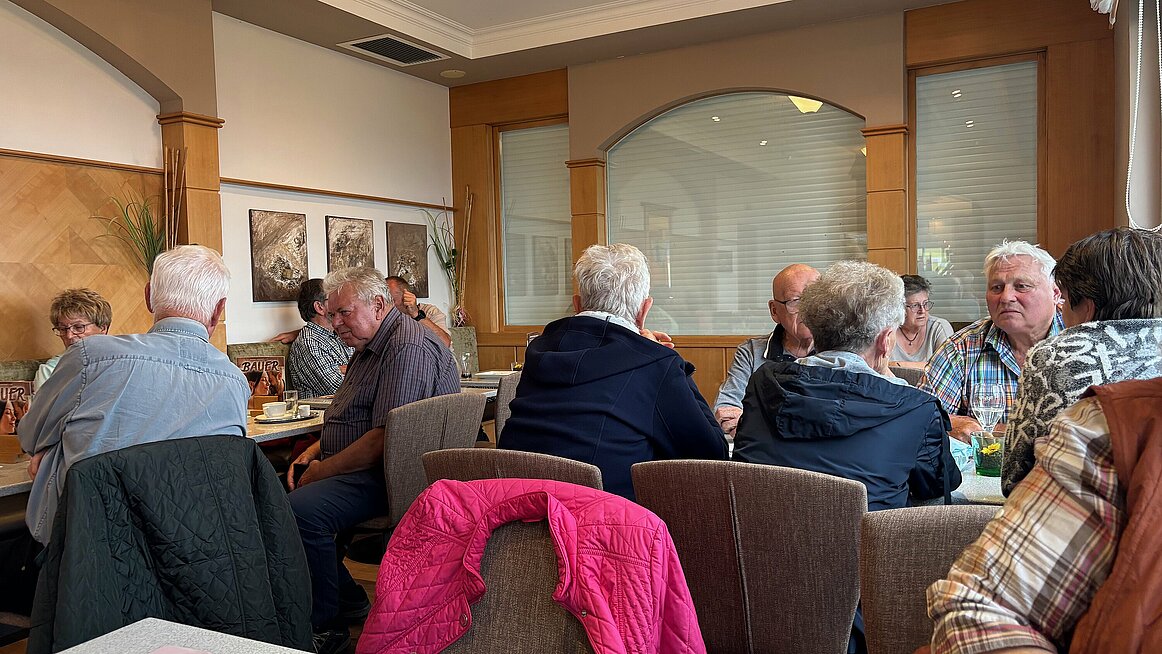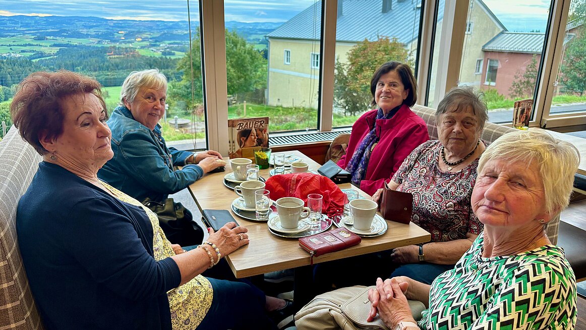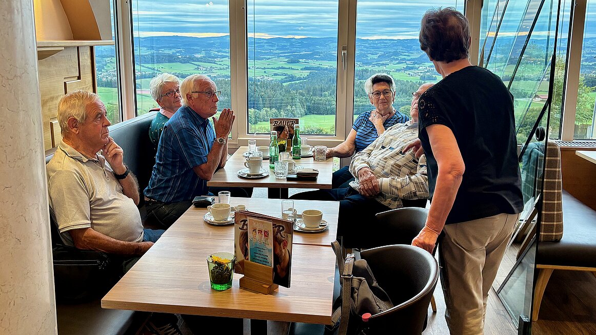Zum Abschluss machten wir noch Halt im Panoramacafé Bauer in Pfarrkirchen. Zwar blieb uns der Sonnenuntergang verborgen, aber die hausgemachten Köstlichkeiten – Torten, Schinkenstangerl, Eis und Kaffee – entschädigten uns mehr als genug. Am Ende waren alle satt, zufrieden und um einige Kalorien reicher. Um 18.00 Uhr traten wir die Heimfahrt an – mit dem Gefühl: Es war ein Tag voller Eindrücke, Genuss und Gemeinschaft.
