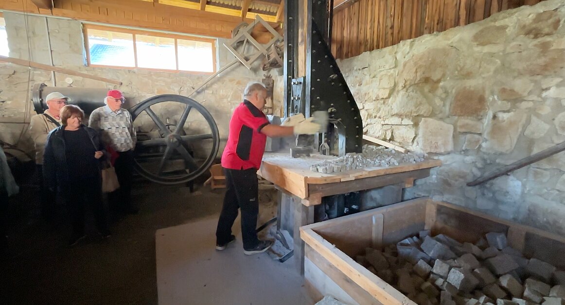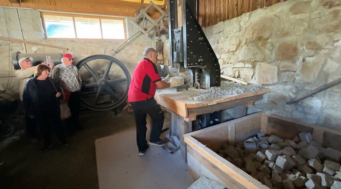 Hier drehte sich alles rund um den Stein – und das nicht nur sprichwörtlich. Ob Natursteinlehrpfad, Hammerhütte oder Arena Granit: wir erfuhren, wie hart früher der Broterwerb war, als die Männer und sogar Frauen noch Pflastersteine im Schweiße ihres Angesichts klopften – und das ganz ohne Klimaanlage und Betriebsrat. Besonders spannend: der Kleinsteinhammer, der noch einmal ordentlich in Schwung gebracht wurde. Da wurde uns allen klar: Mit solchen Arbeitsbedingungen wären unsere Politiker wahrscheinlich schon nach zwei Stunden ins „Homeoffice“ geflüchtet.