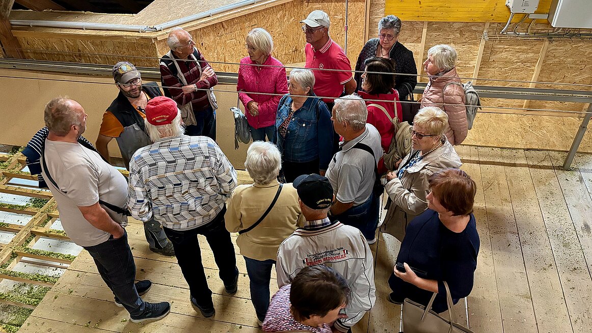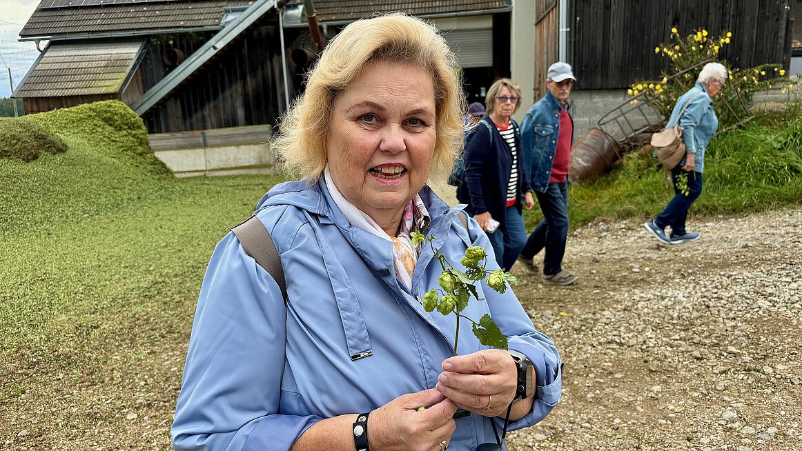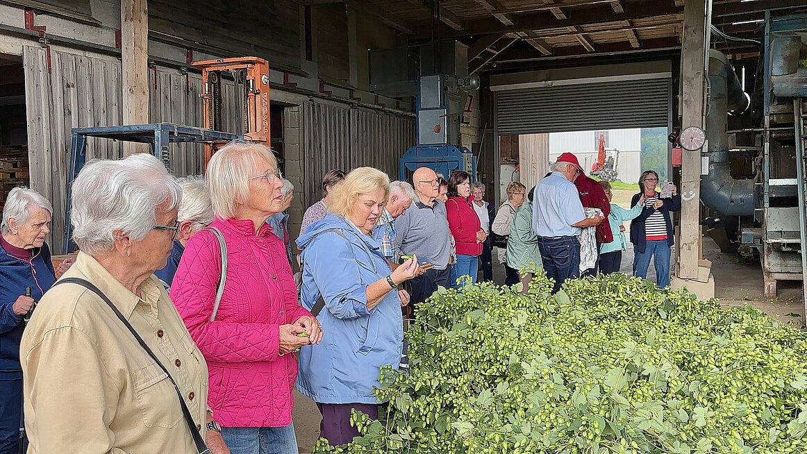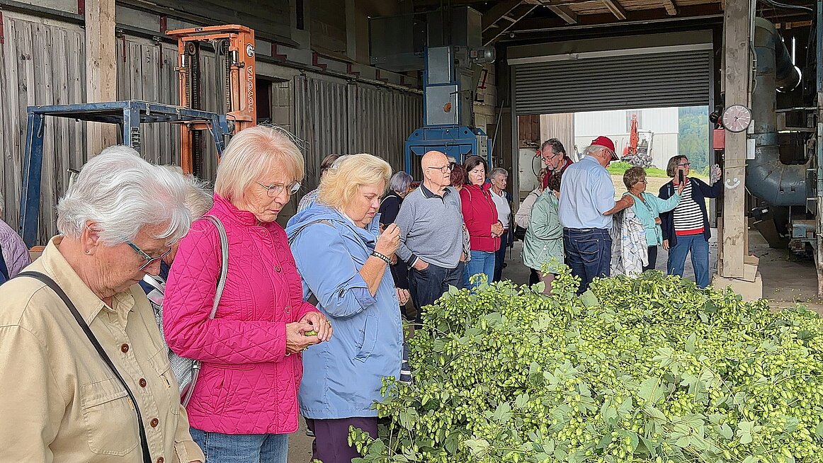 Frisch gestärkt ging es weiter zum Hopfenbauer Reiter. Dort erhielten wir einen Einblick in die Geheimnisse des Biergenusses von der Wurzel bis zur Hopfendolde. Vom aufwendigen Drahtgerüst bis zum Darrprozess – wir staunten, wie viel Arbeit in so einem Krügerl steckt. Und als die Verkostung von Hopfen-Kräutertee, Freistädter und Kübelbier begann, sank bei einigen der Blutzuckerspiegel verdächtig schnell – zum Glück war Nachschub vorhanden.