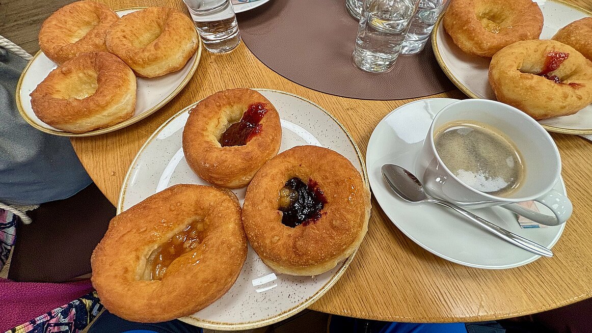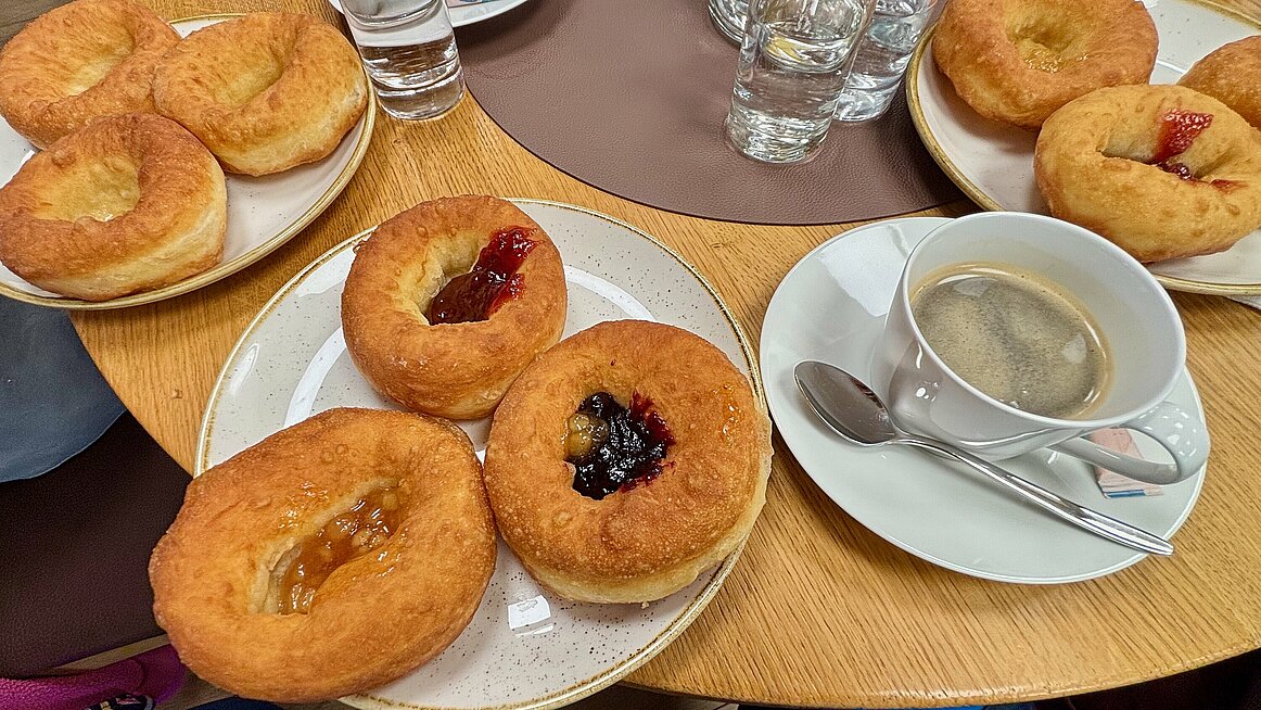 Nach der spannenden Vorführung durften wir natürlich auch verkosten: Drei kleine Bauernkrapfen – außen knusprig, innen flaumig – warteten nur darauf, mit Marmelade bestrichen zu werden. Jeder suchte sich seine Lieblingssorte aus, und so mancher fand gleich ein Souvenir im angeschlossenen Shop. Dazu gab’s Kaffee, Lachen und viele zufriedene Gesichter.