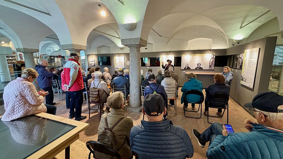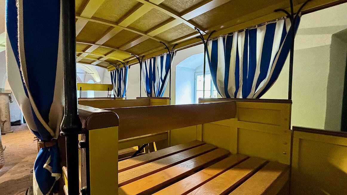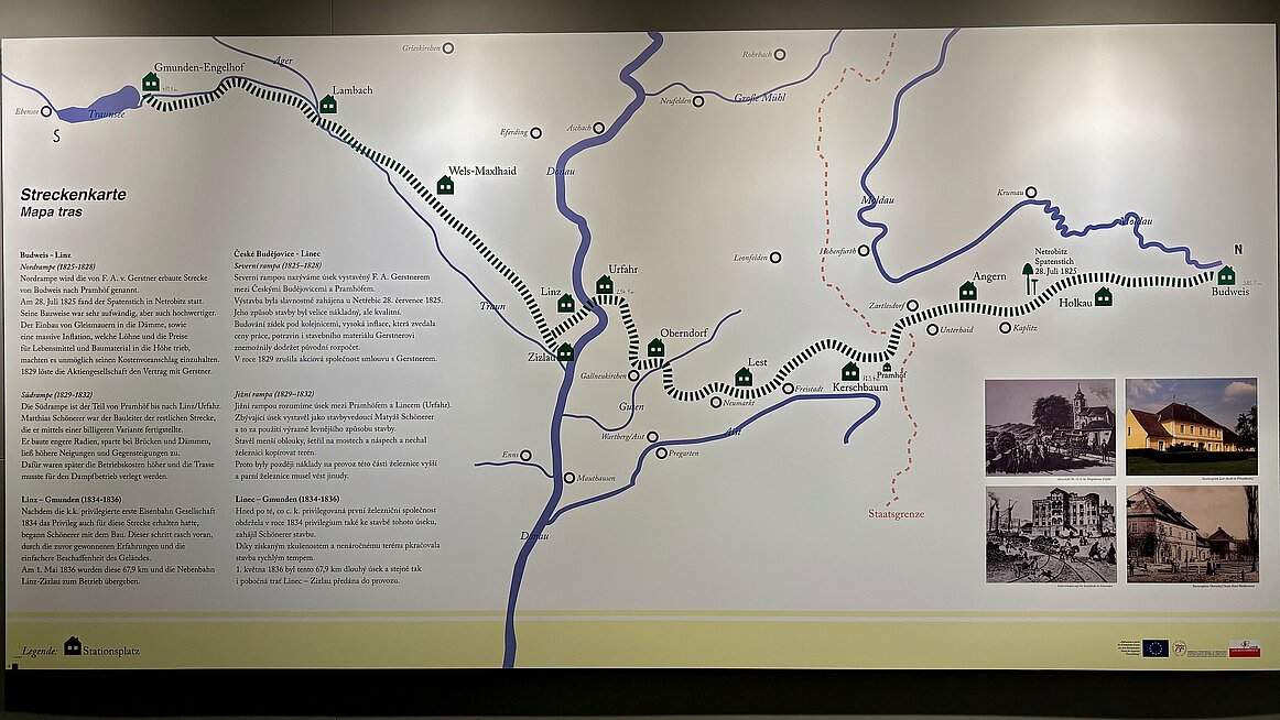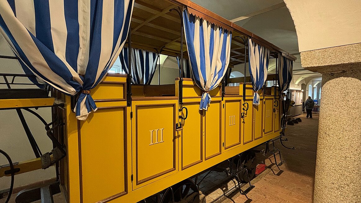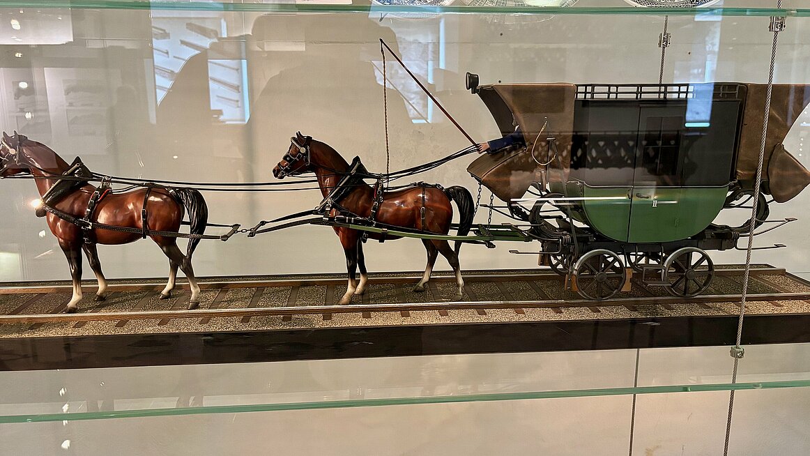 Anschließend besuchten wir das Pferdeeisenbahn-Museum, das in den prachtvoll renovierten Gewölbestallungen des ehemaligen Pferdebahnhofs untergebracht ist. Hier erfuhren wir Spannendes über den Betrieb der Pferdeeisenbahn von 1832 bis 1872, sahen Originalteile und lernten, dass die damaligen Güterwagen aus Holz waren – besonders leicht, damit ein Pferd mehr Fracht ziehen konnte.