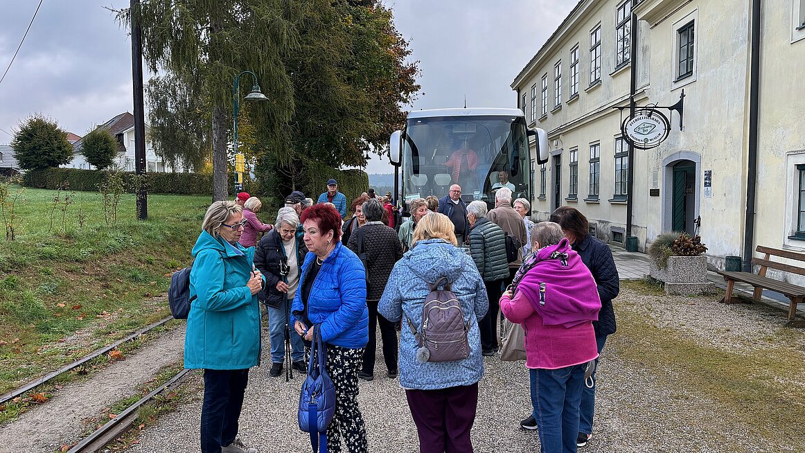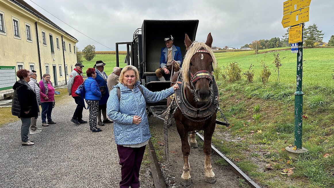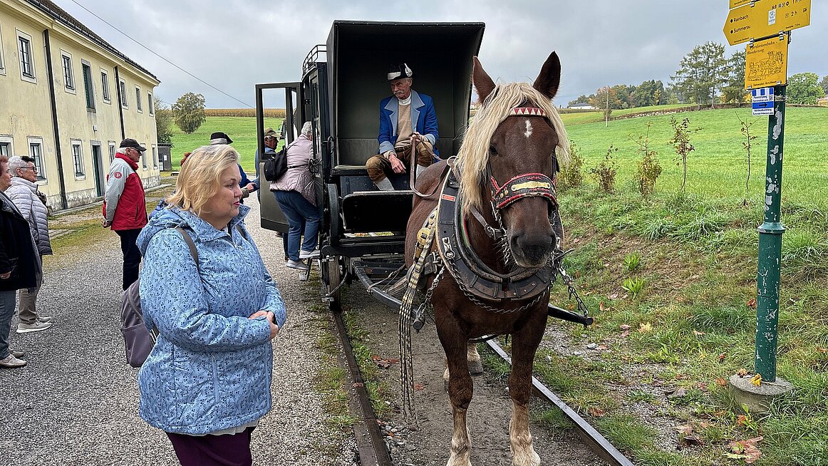 In Kerschbaum wurden wir herzlich von charmanten Biedermeierdamen empfangen, die uns in längst vergangene Zeiten entführten. Schon der erste Anblick der nostalgischen Pferdeeisenbahn ließ uns staunen – ein echtes Stück Geschichte zum Anfassen!